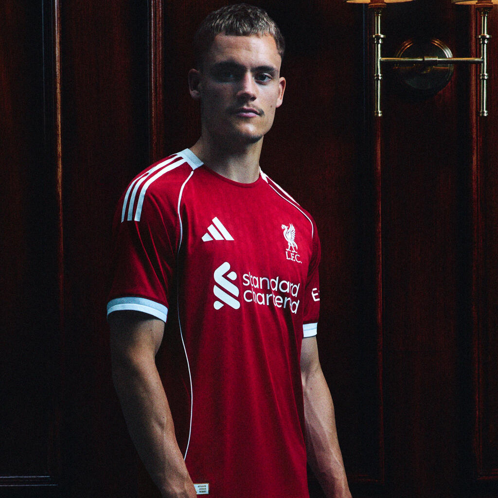 This new adult's 25/26 season shirt is inspired by the rich history between Liverpool FC and Adidas. Support the Reds with this perspiration-wicking shirt.