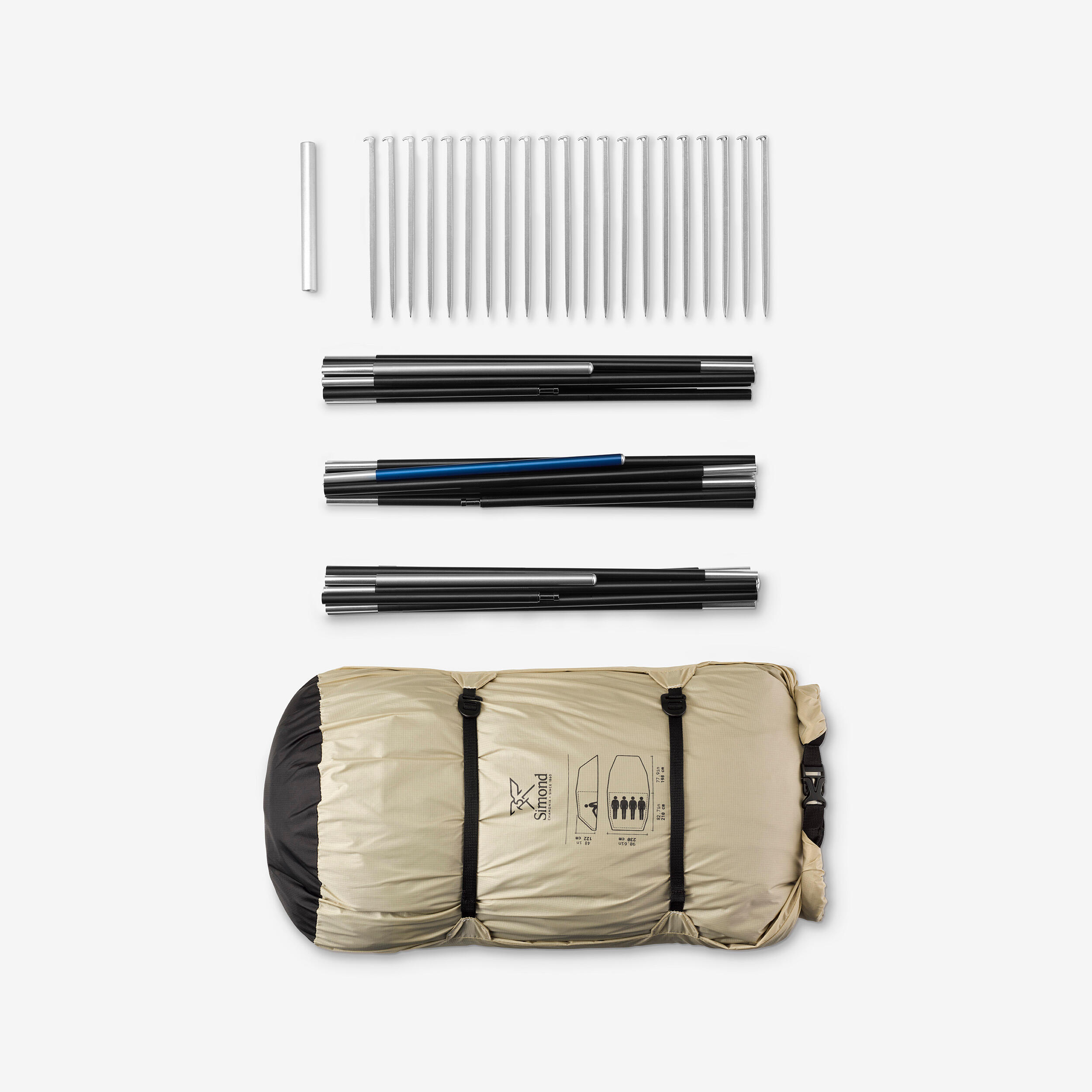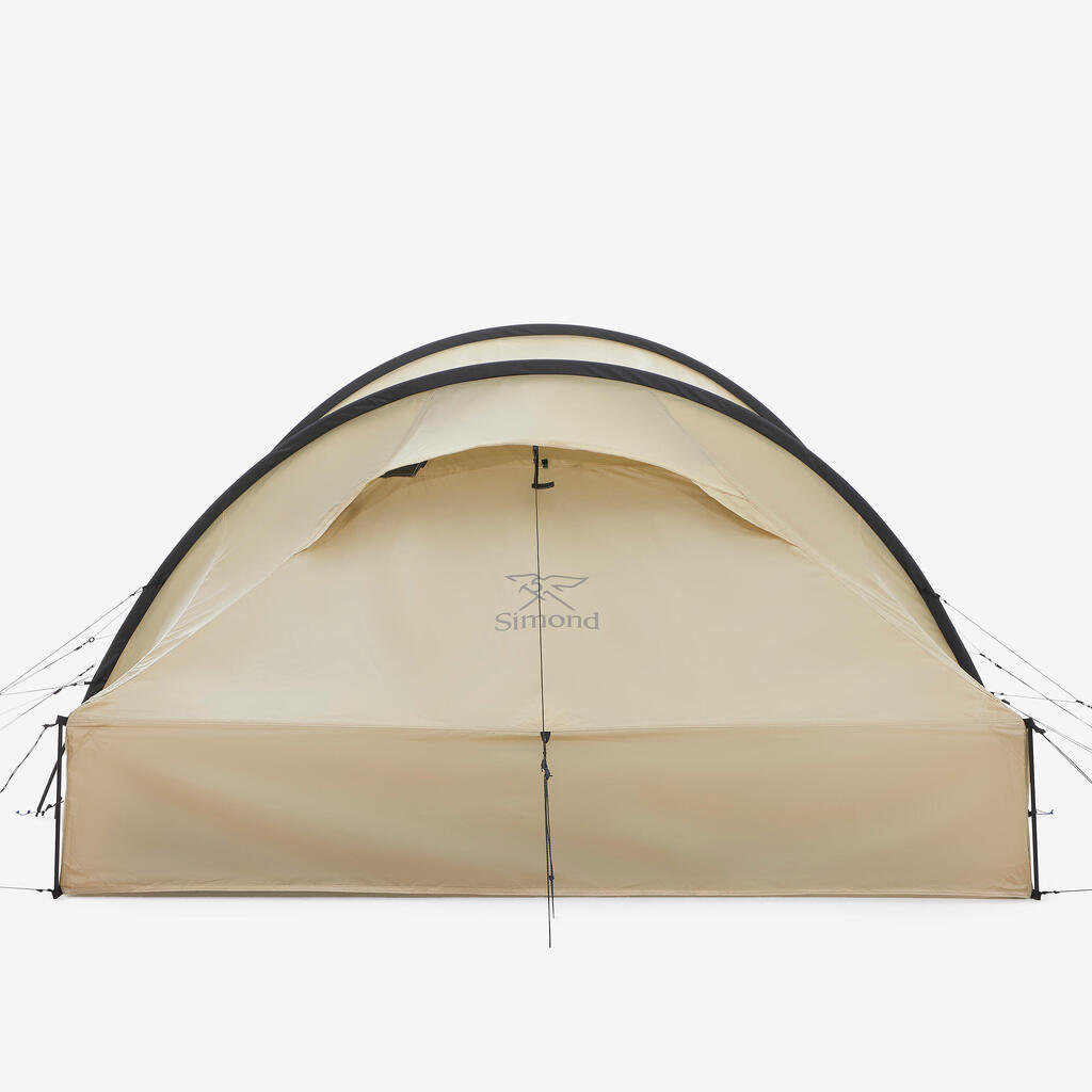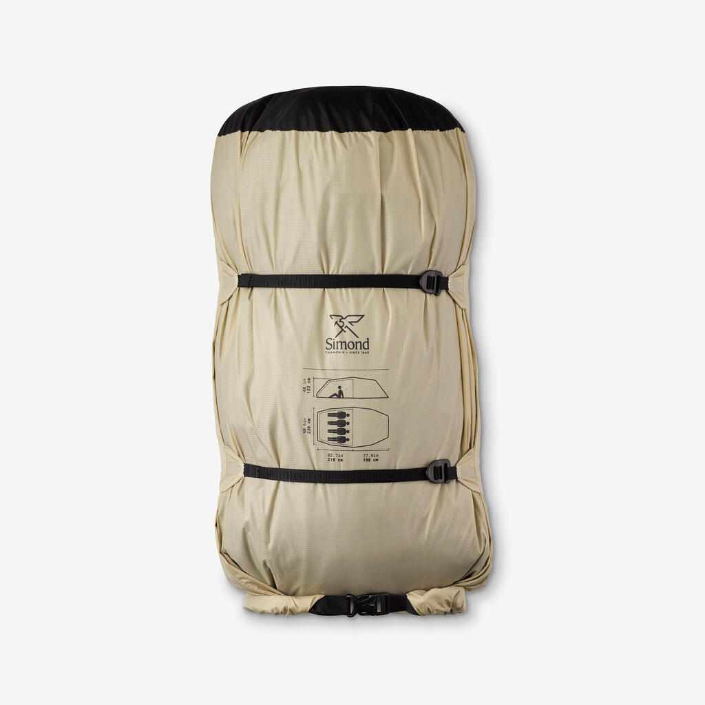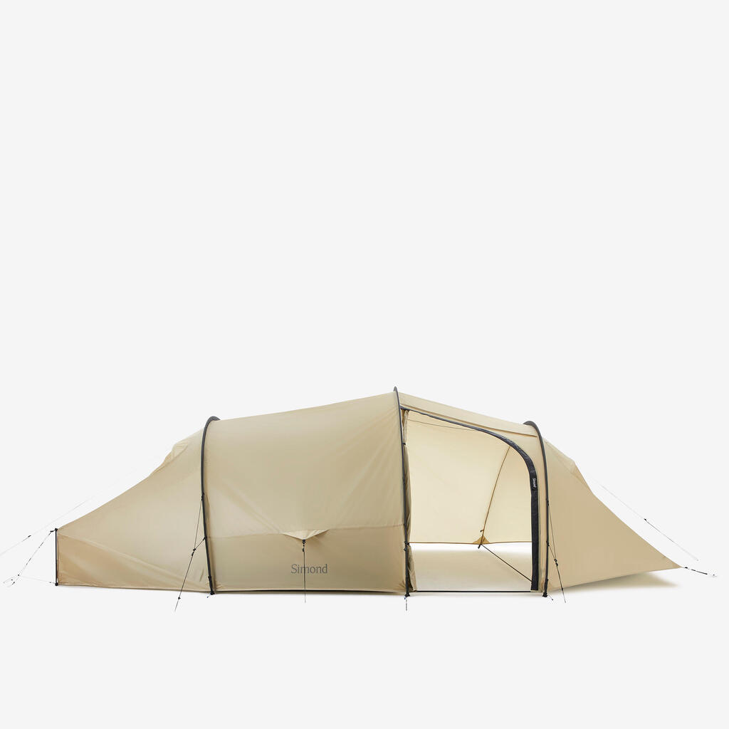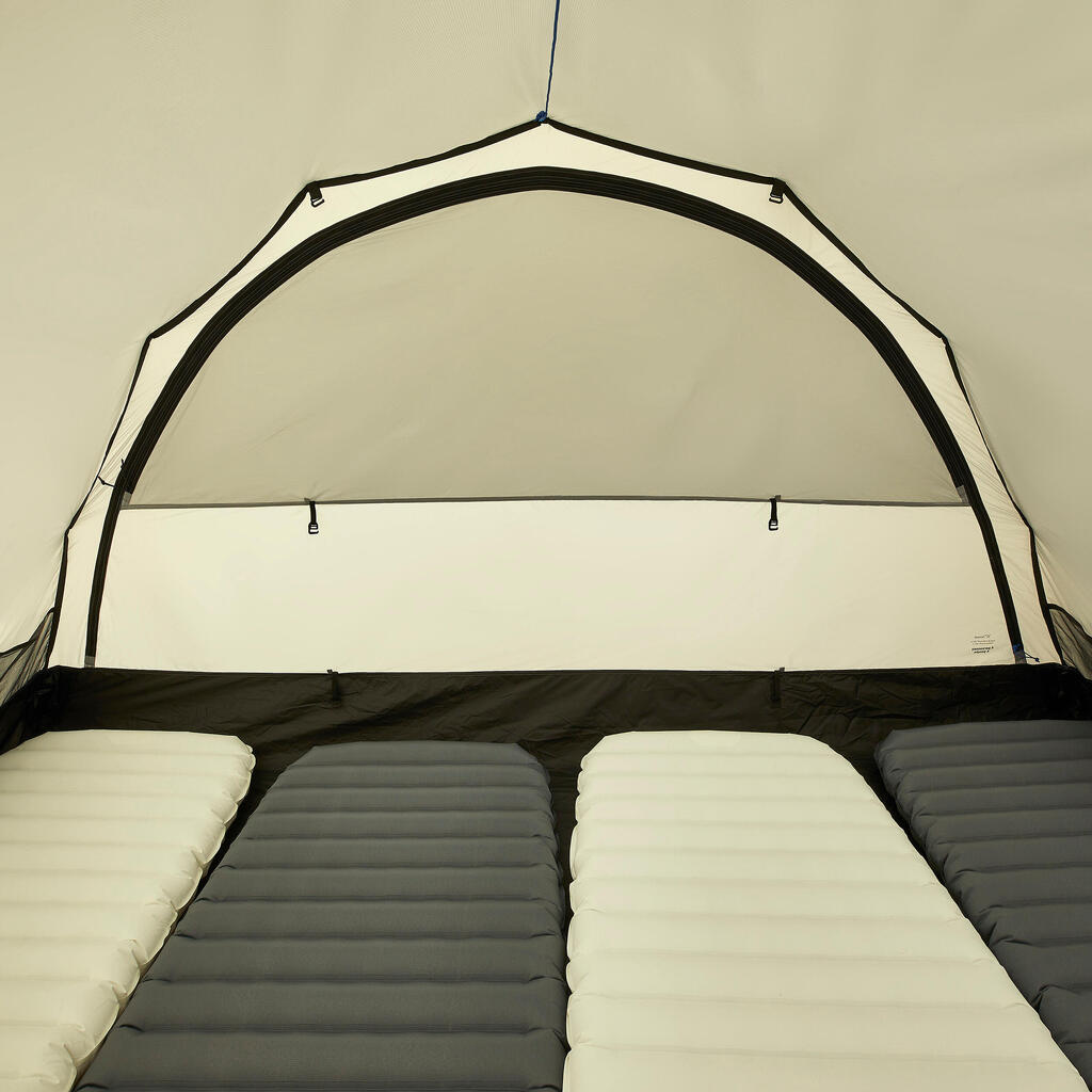 A ground sheet sold separately (reference: 8975375) has been designed to add an additional layer of protection to this MT900 tunnel tent. This feature helps to limit abrasion and increase the waterproofing capacity of the inner tent’s ground sheet, also allowing the tent to be pitched in tarp mode without the inner tent.