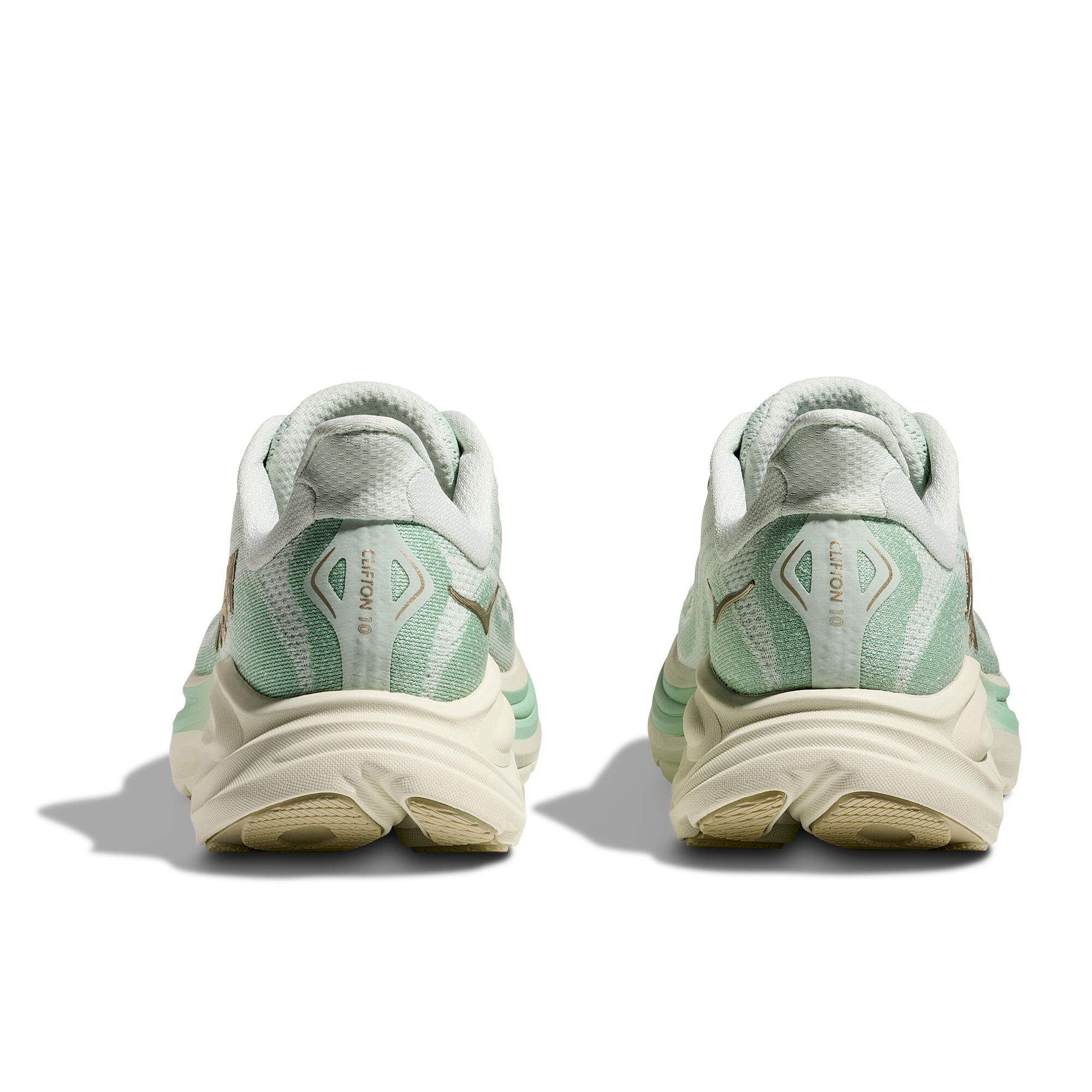 The Clifton 10 has been the emblem of HOKA comfort for 10 years. This new version has been redesigned to improve support and foot roll while maintaining the same lightweight cushioning.