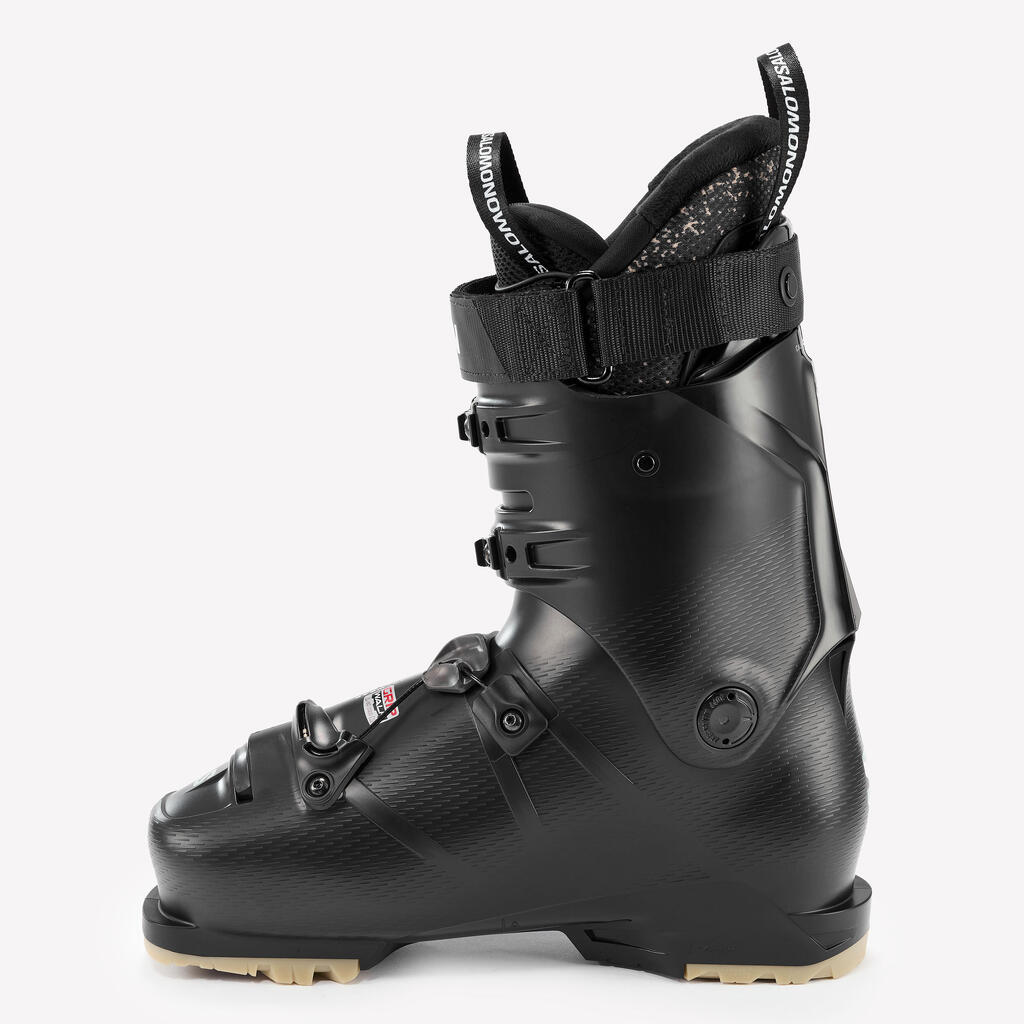 All-mountain skiing involves skiing on varied terrain and in different snow conditions during a single outing. on-piste, edge of the piste, off-piste, icy, powdery snow, etc. This type of skiing requires versatile equipment that offers stability, manoeuvrability and comfort.These boots are made from 50% recycled plastic.