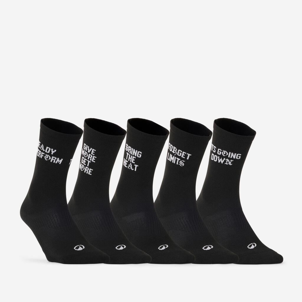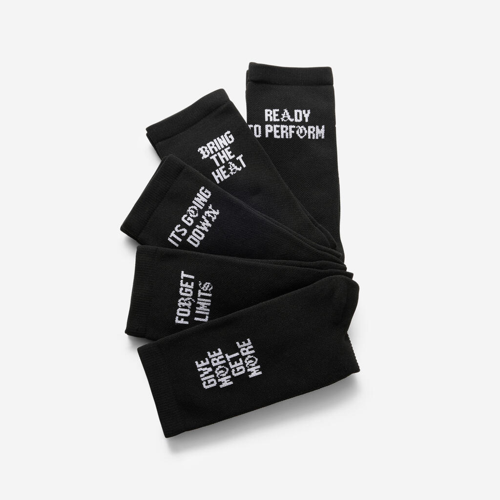 This pack of 5 mid-calf socks meets the needs of fitness enthusiasts: anti-irritation reinforcements, non-slip support and moisture management.