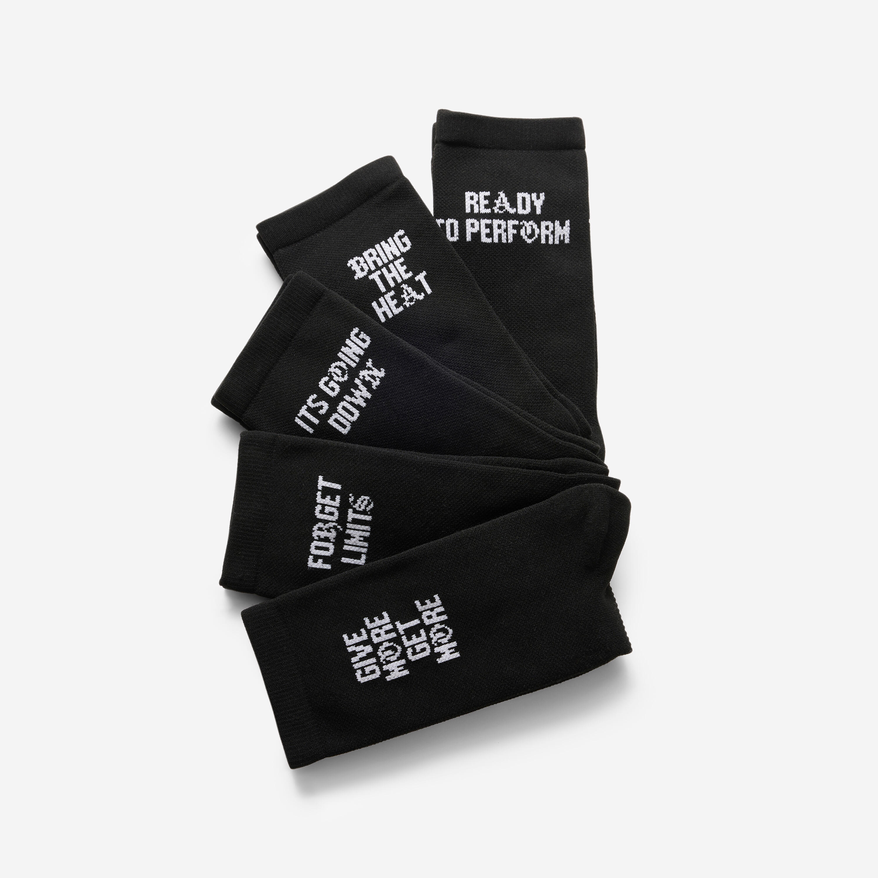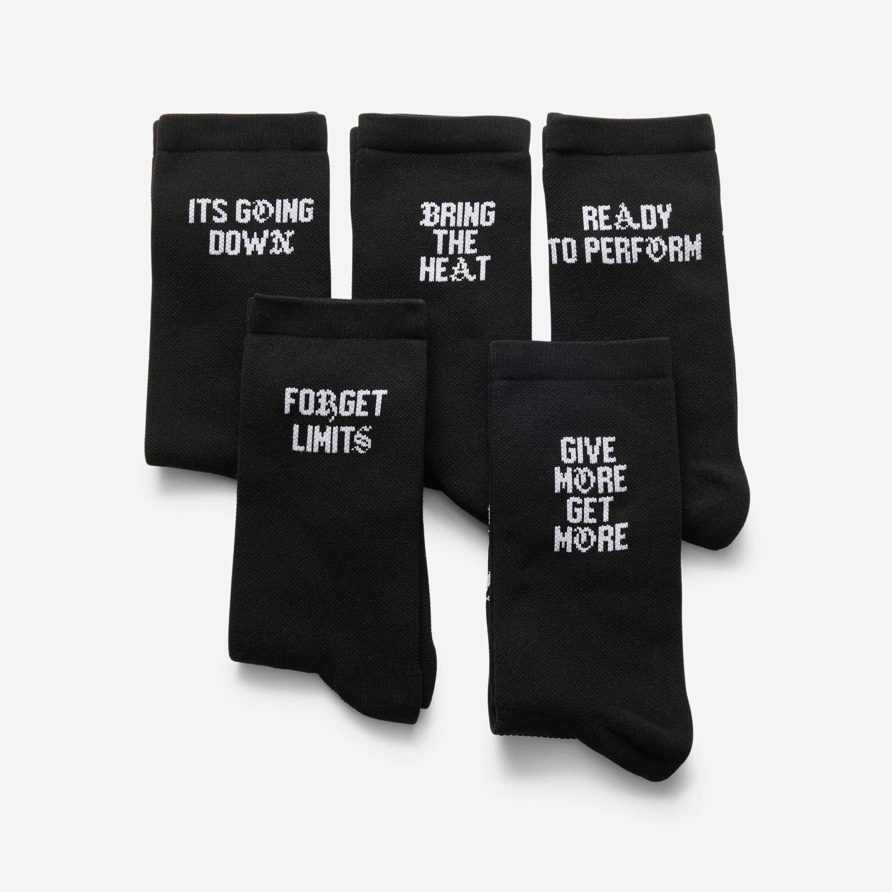 Five pairs so you can get on with your workouts without any hassle.The special knit keeps the socks in place. Reinforcements protect the heel and toes from repeated friction.