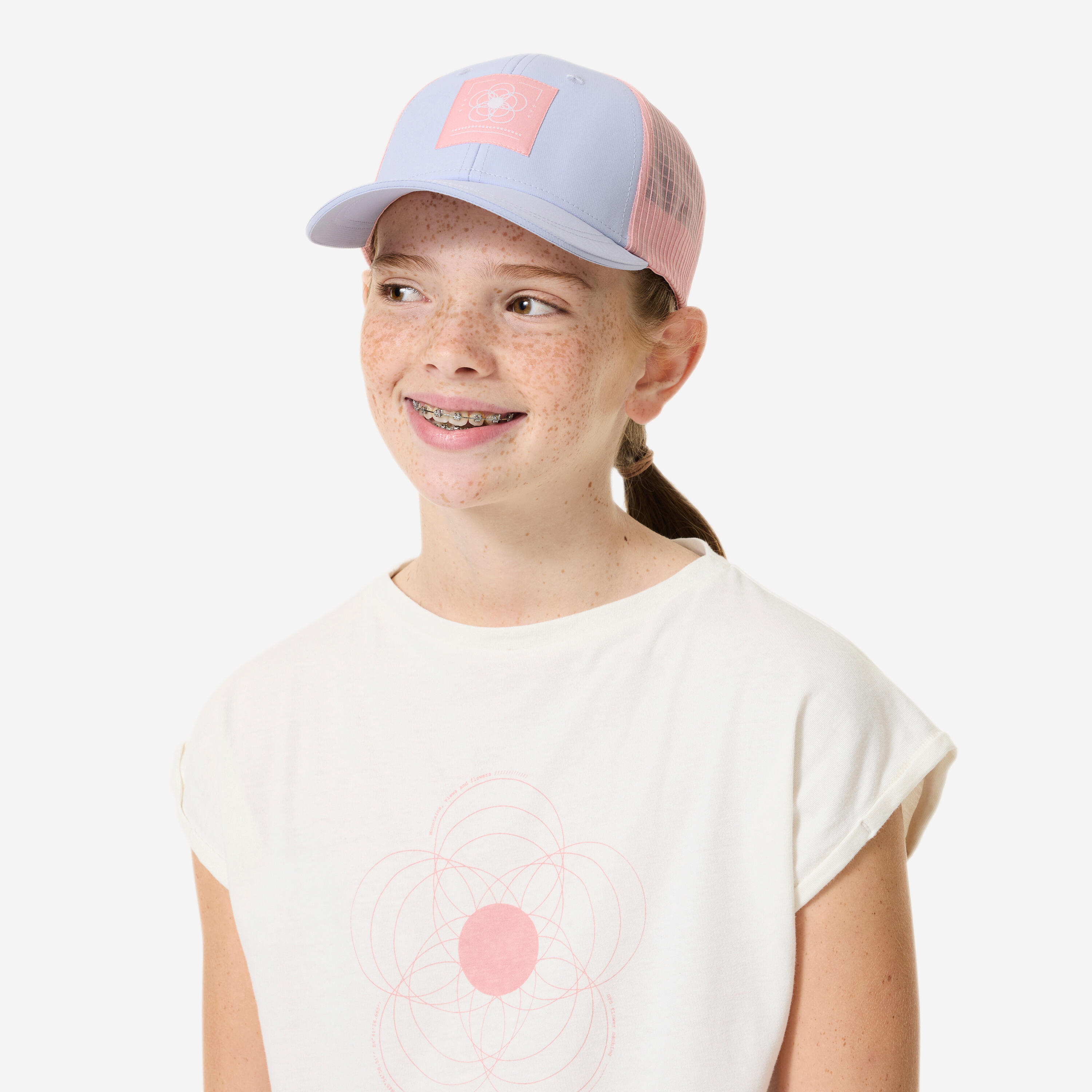 Kids’ Trucker hiking cap MH100, 7-15 years - Purple