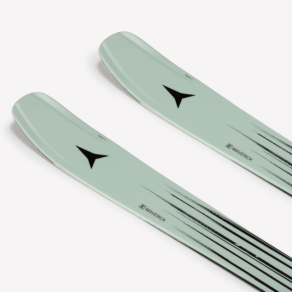 HorizonTec spoon-shaped tips for lightness and flotation in powder snow, Multi-size binding with tool-free adjustment.