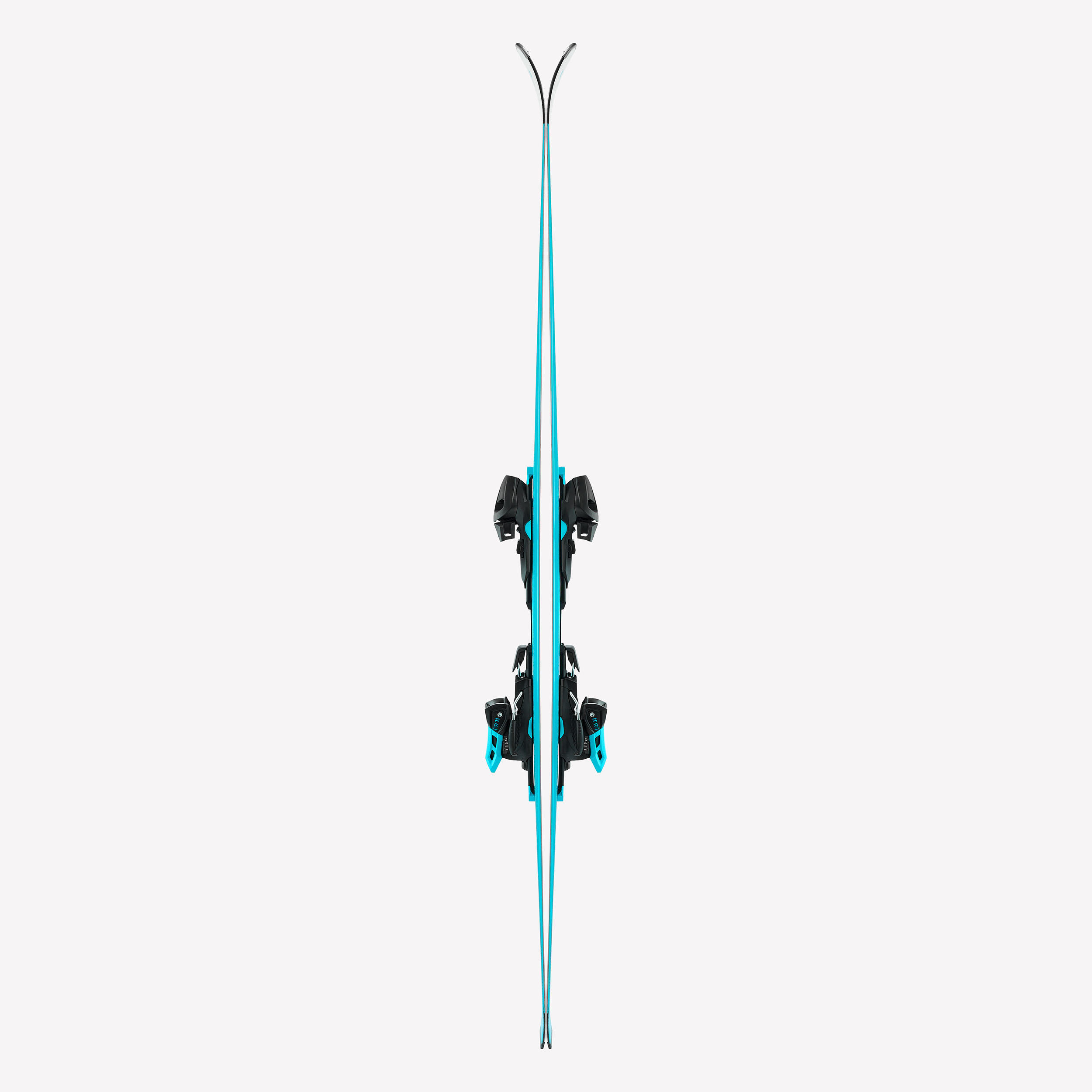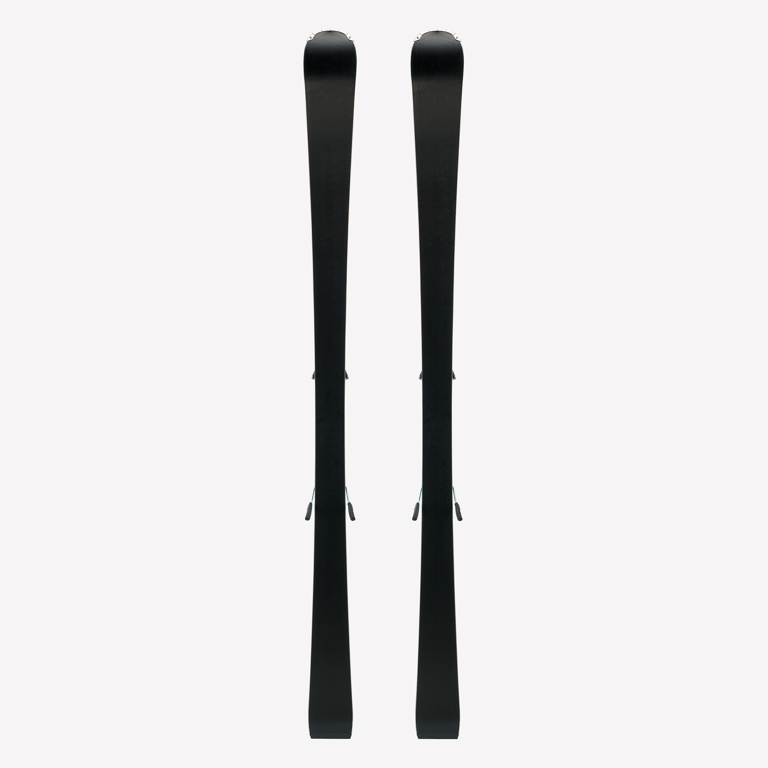 On the ground, the points of contact between the ski and the snow are near the tip and tail, while the centre (under the bindings) rises slightly (this is the camber). The longer and higher the camber, the greater the edge grip and more responsive the ski. The lower the camber, the more forgiving the skis and the better the handling.