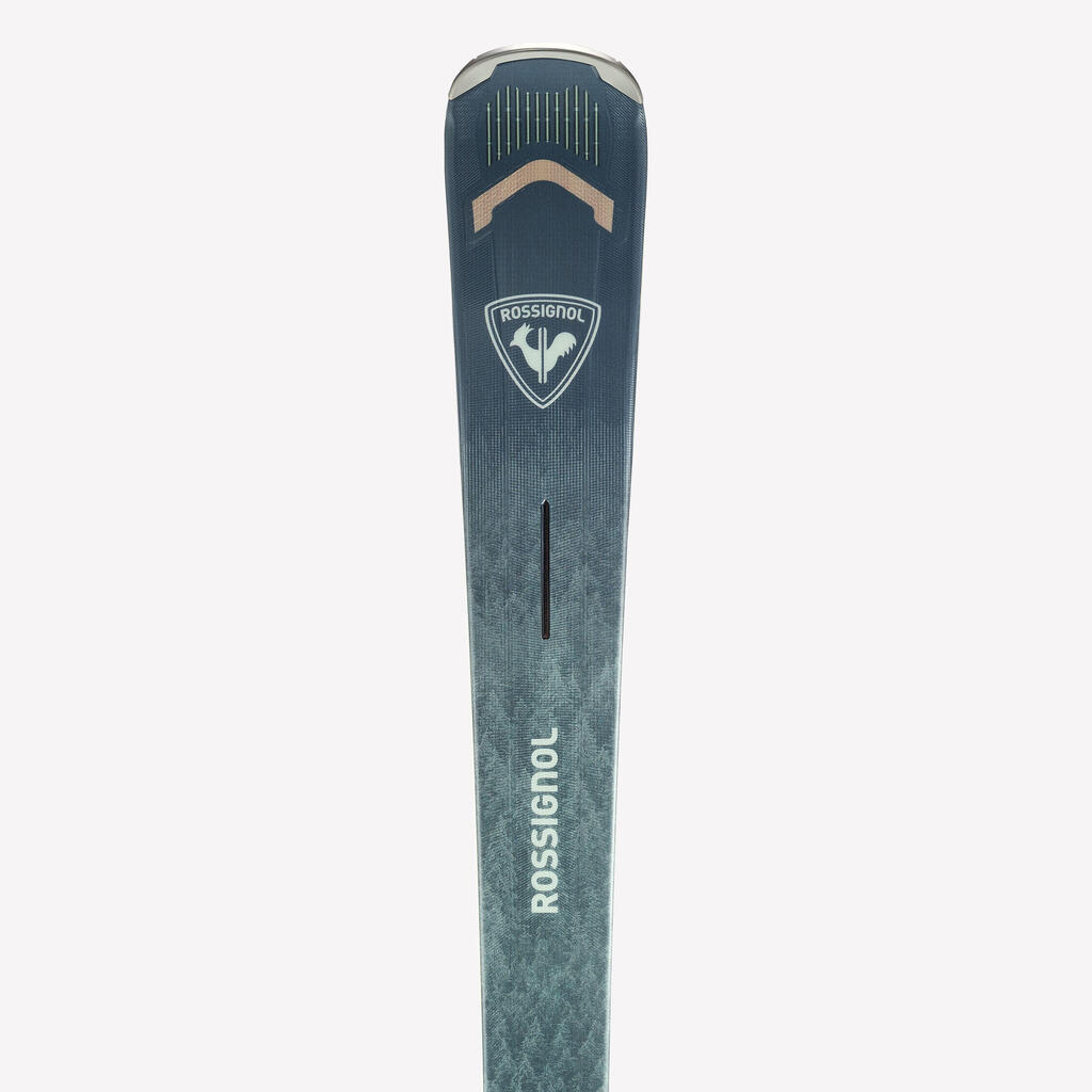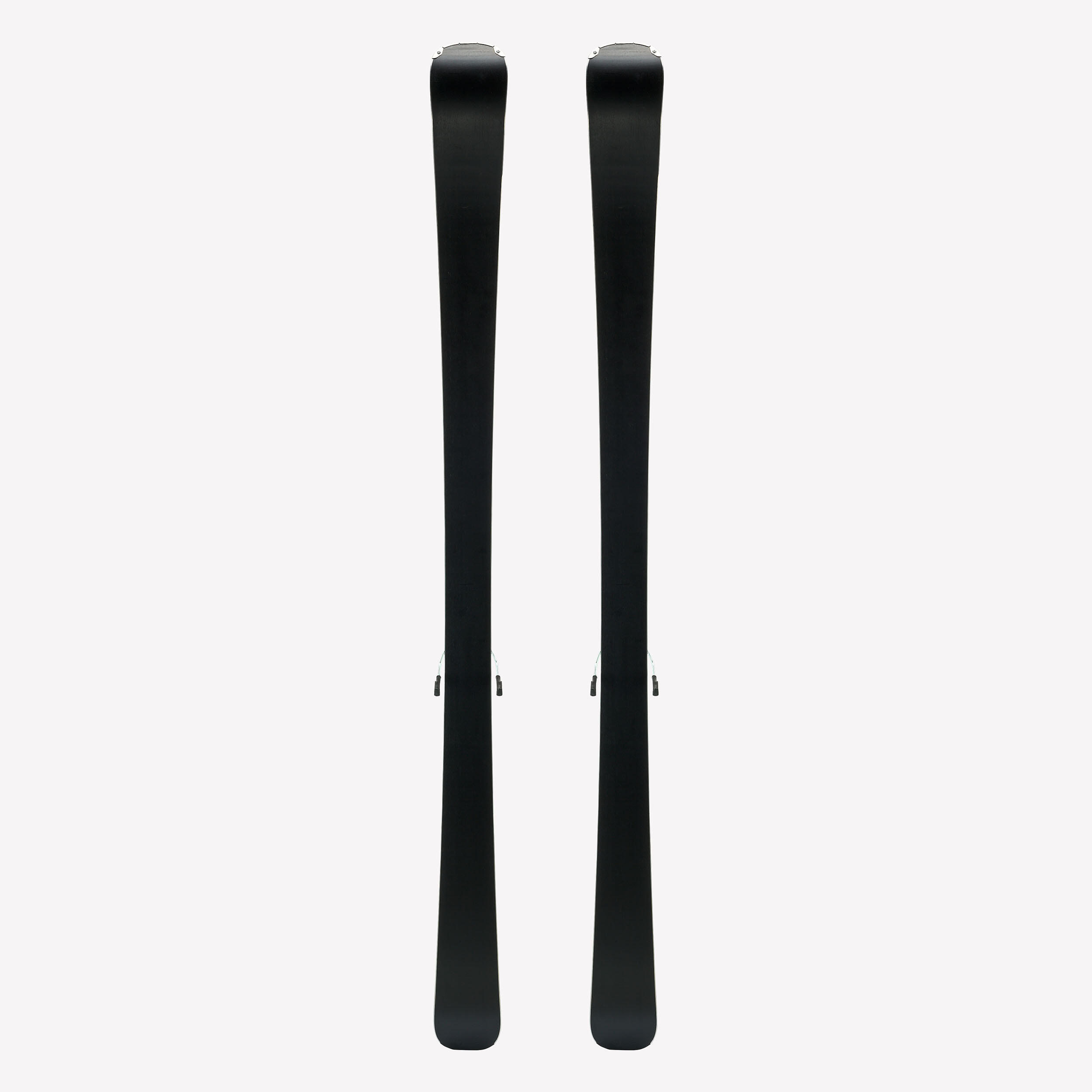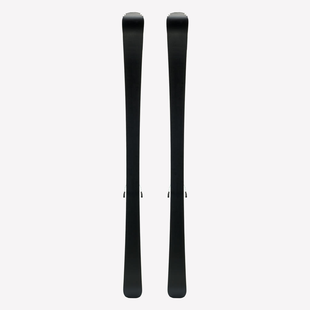 On the ground, the points of contact between the ski and the snow are near the tip and tail, while the centre (under the bindings) rises slightly (this is the camber). The longer and higher the camber, the greater the edge grip and more responsive the ski. The lower the camber, the more forgiving the skis and the better the handling.
