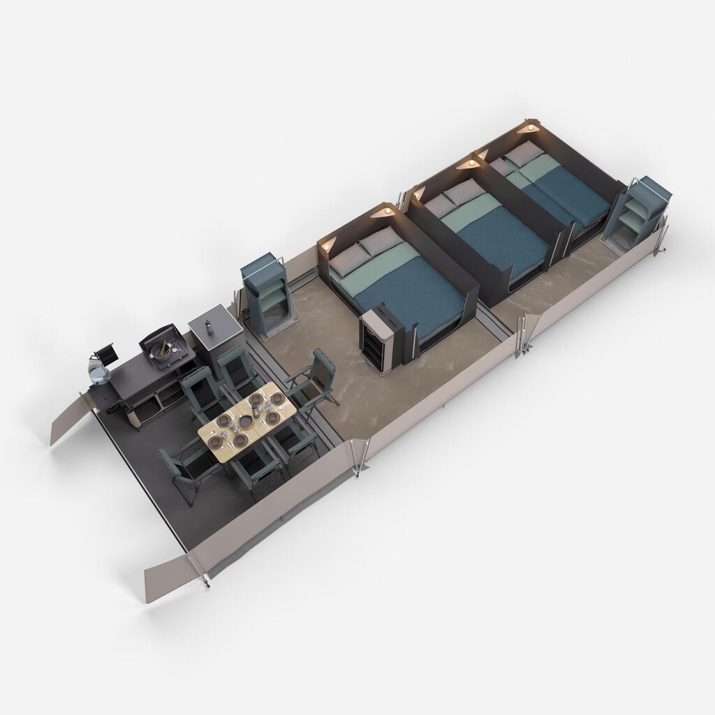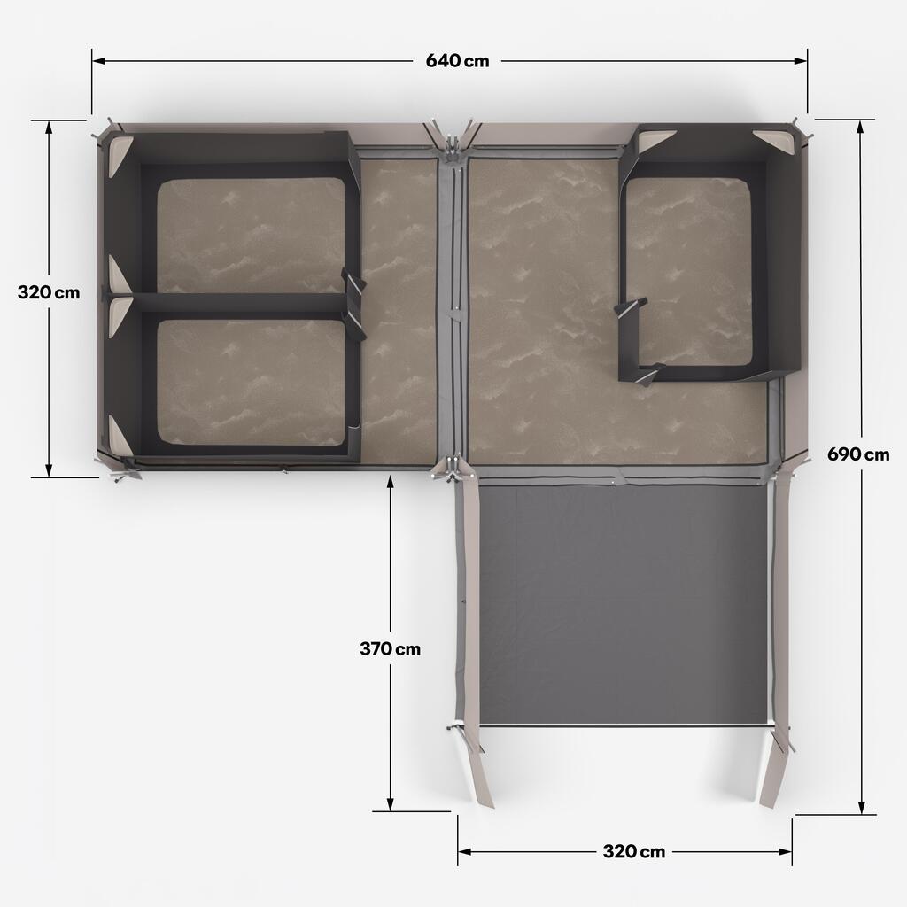 Dimensions au sol avec auvent (emplacement) : 6,30 m x 5,90 m
