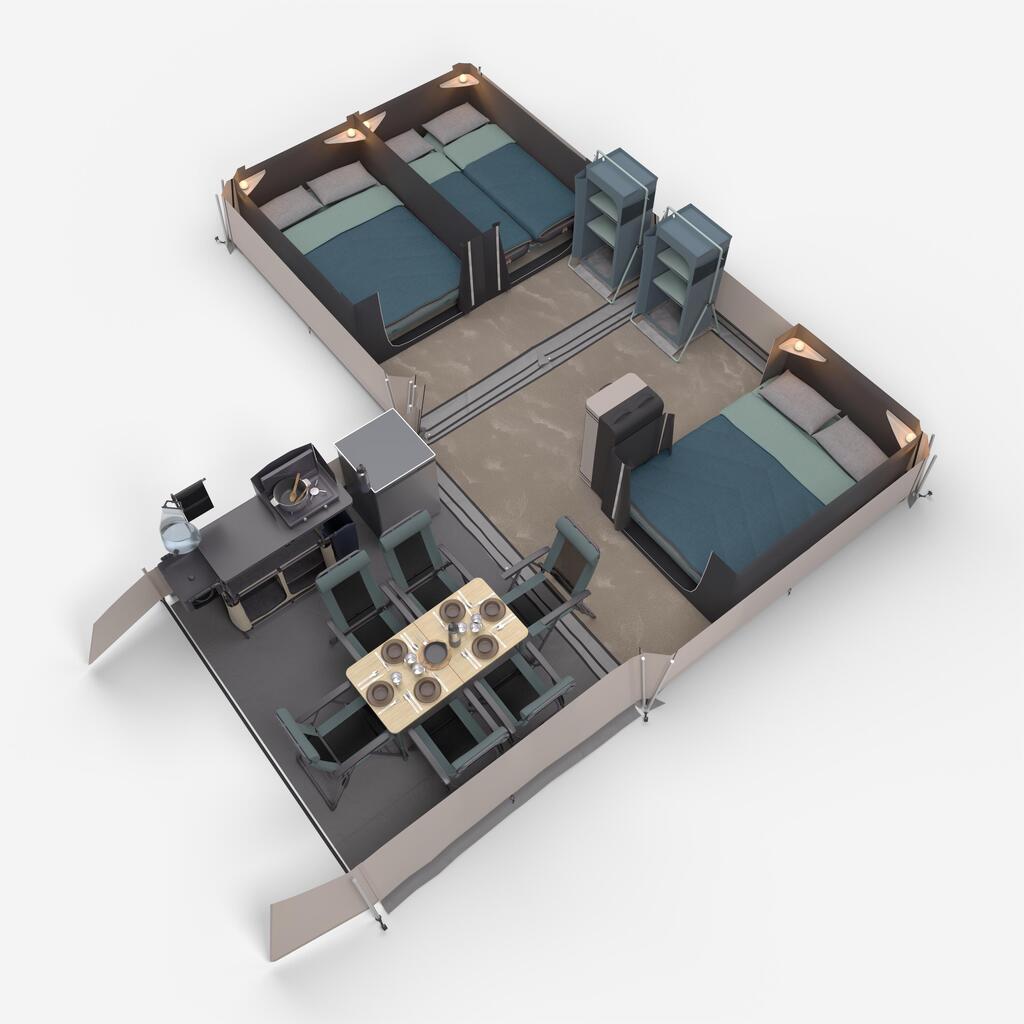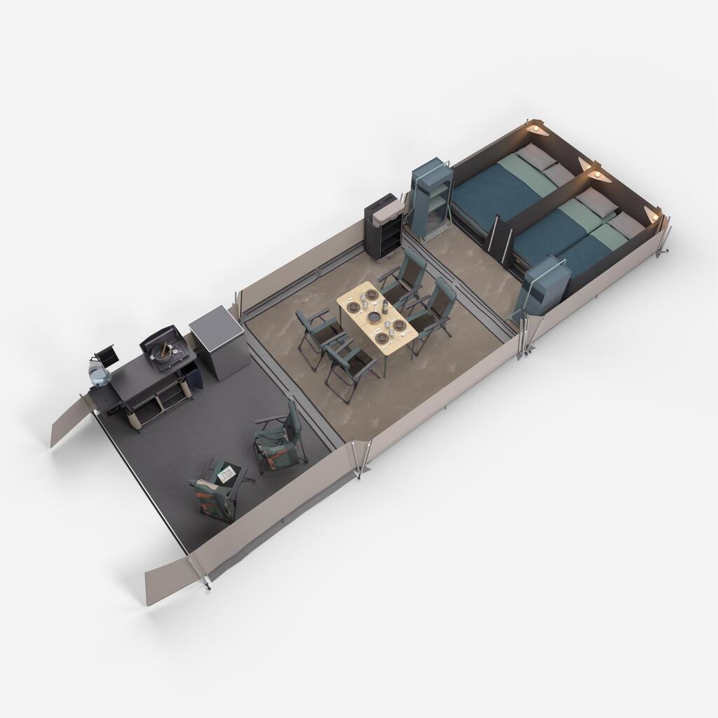This tent is designed to withstand several full camping seasons. It can remain set up on the campsite from opening to closing, except during winter months.