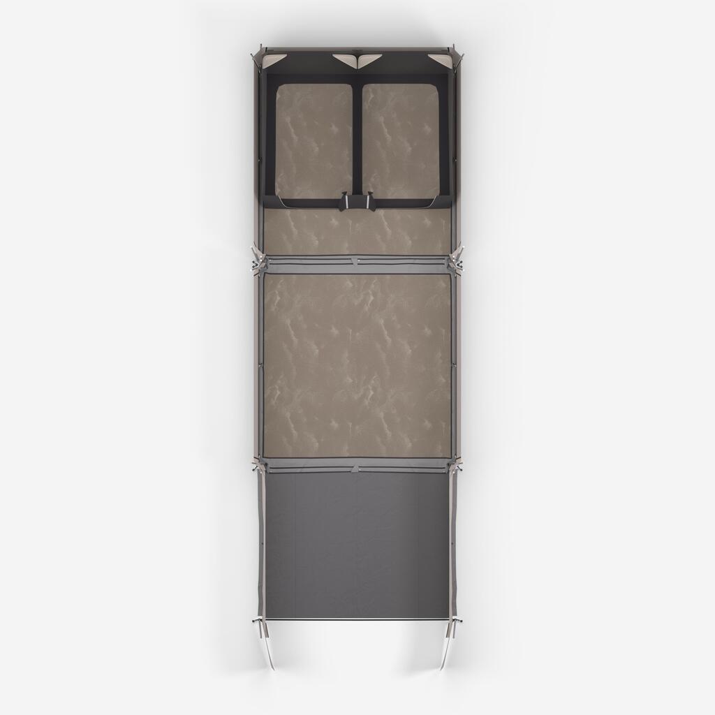 As part of the tent is made of cotton, the canvas must be completely dry before storing it away to prevent mould. It is also important to keep the fabric clean and to deal with stains as quickly as possible. It is advised to wipe away dust with a soft brush.