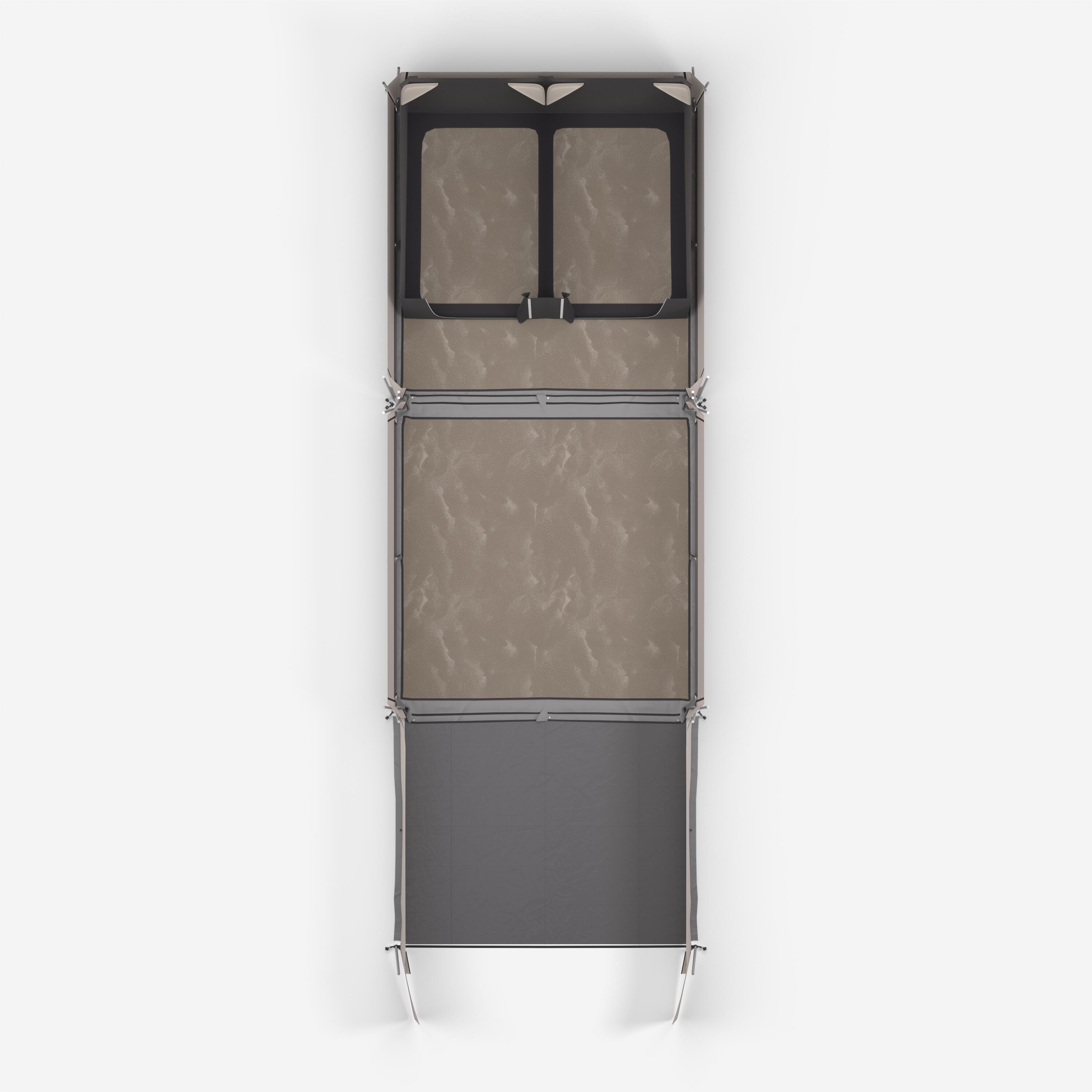 To check that it is waterproof, the tent was placed for three hours under a 200L shower of water per hour, equivalent to a tropical shower of 200mm per hour.