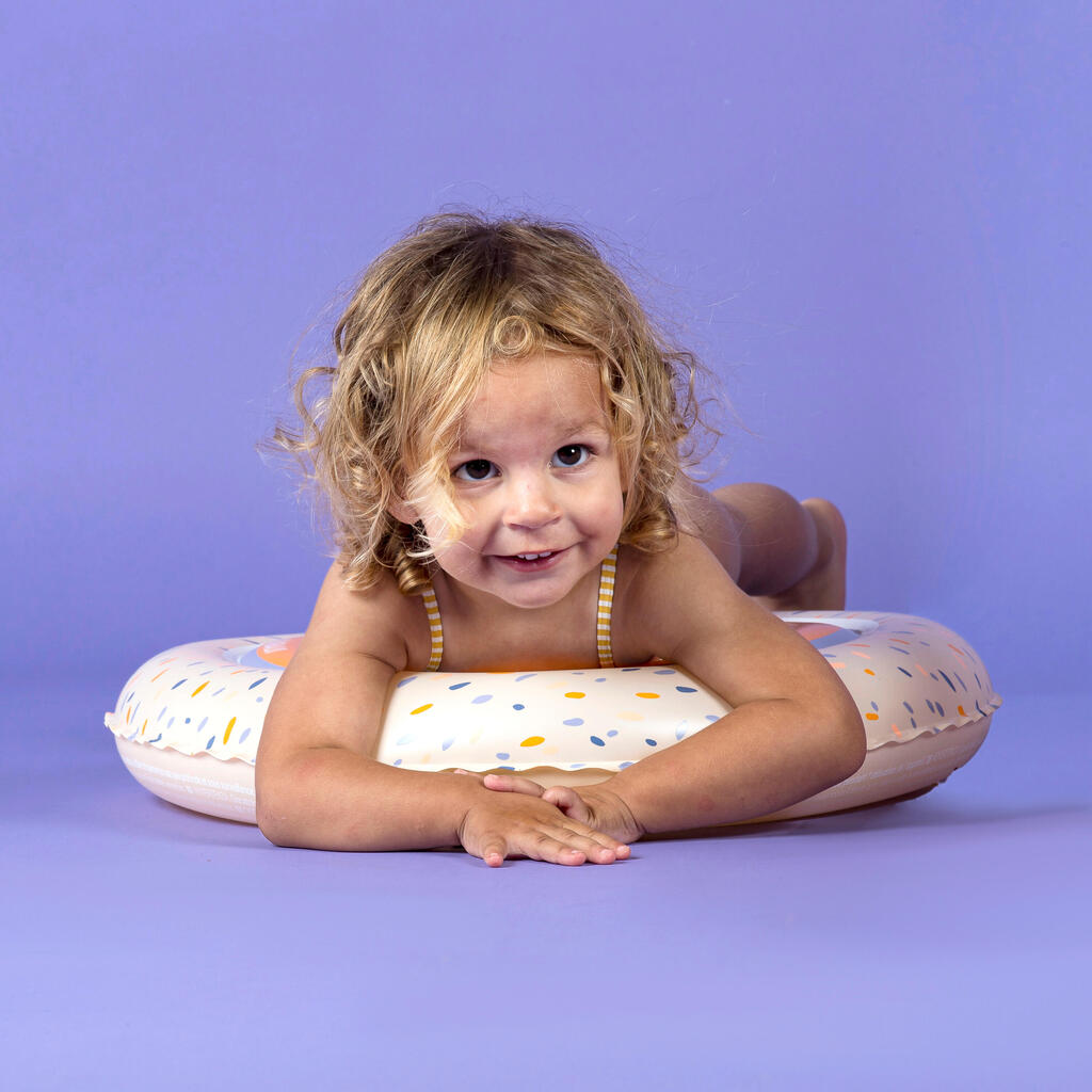 When kids discover the water, they need buoyancy to help them gain confidence in this new environment. The swim ring will allow the child to move in the water whilst having fun. However, please note that the swim ring is not a buoyancy aid but a toy.