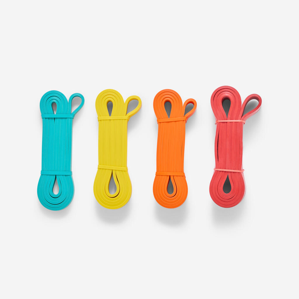 Each of the 4 resistance bands in this set has an unstretched length of 1.04 m. They were carefully selected for gradual progression:
