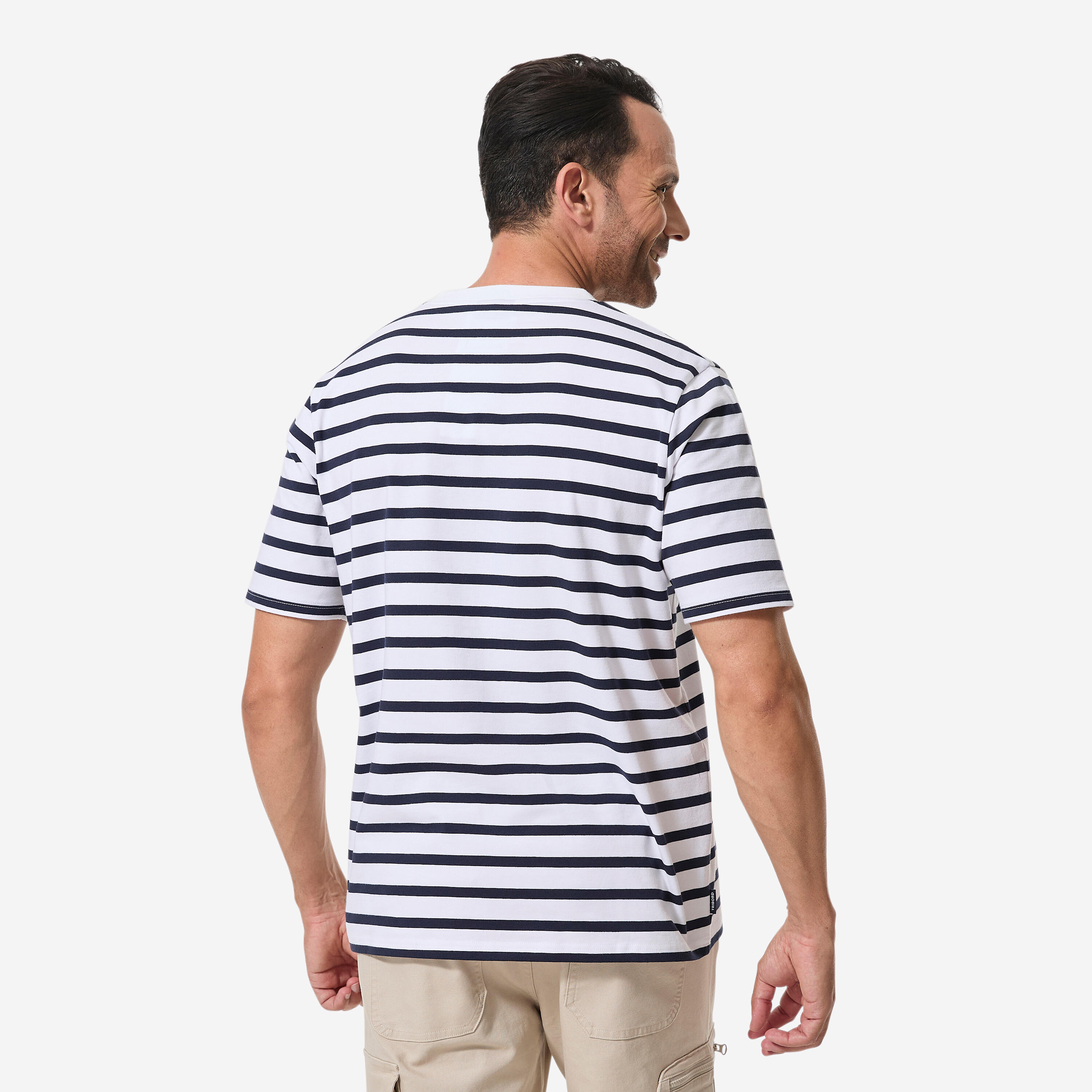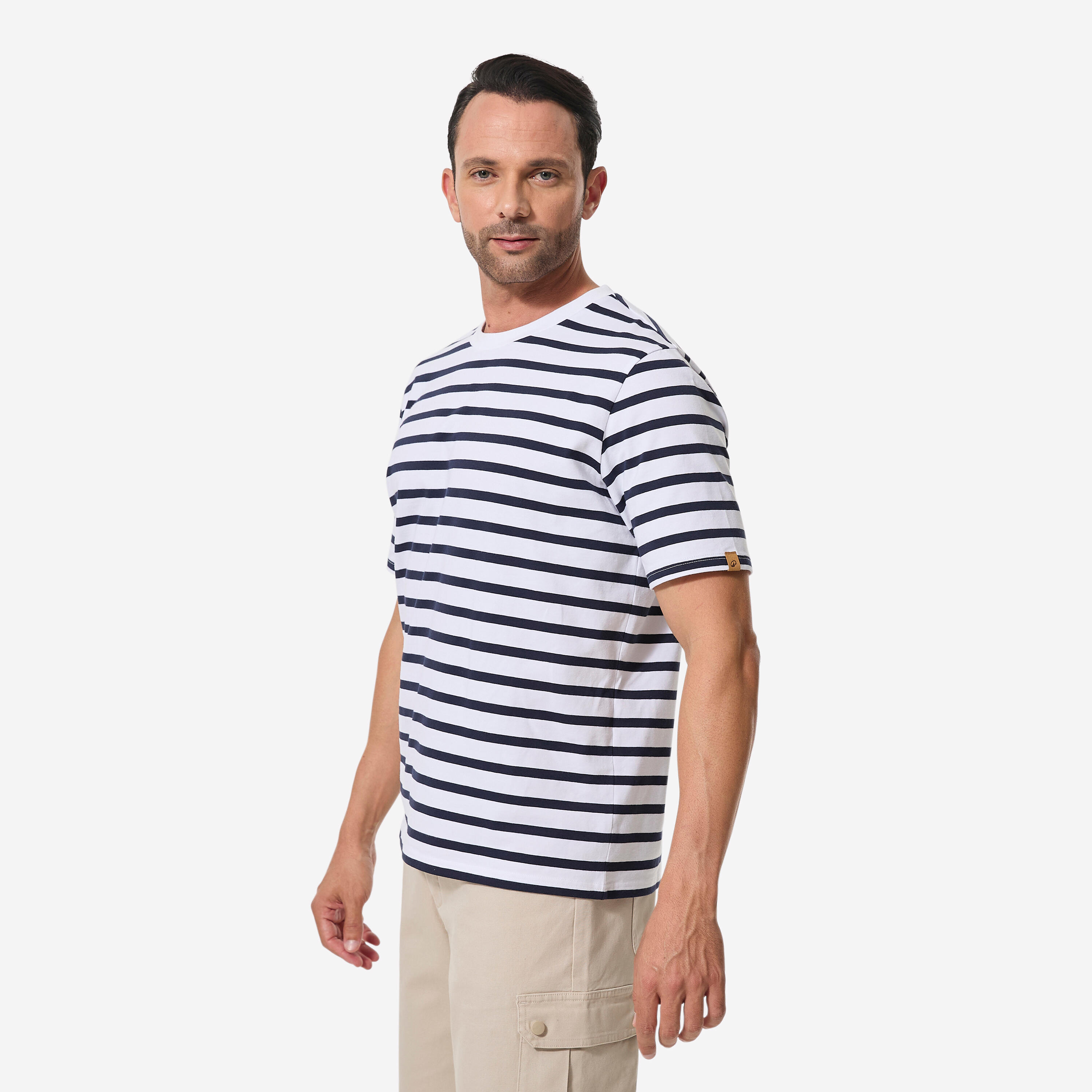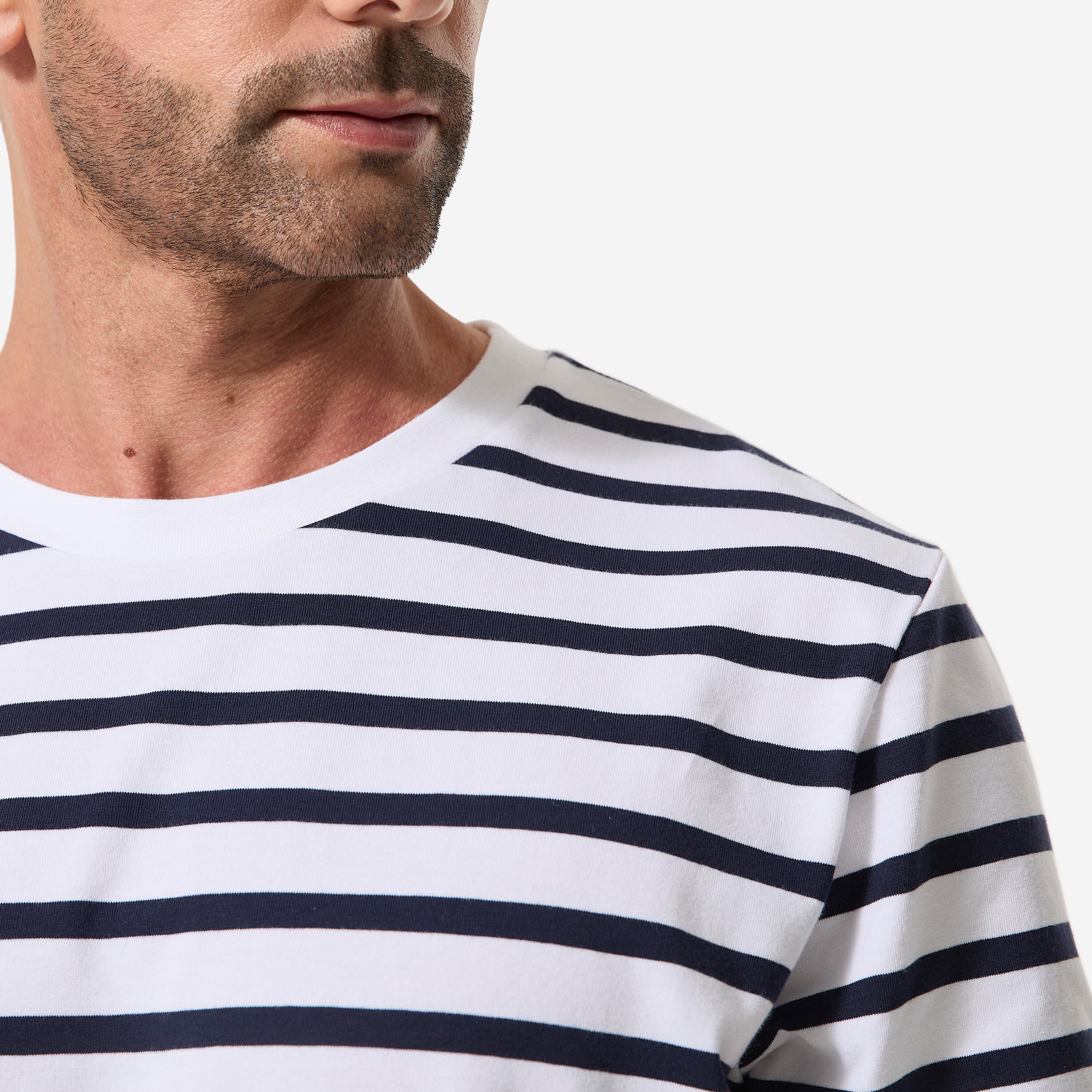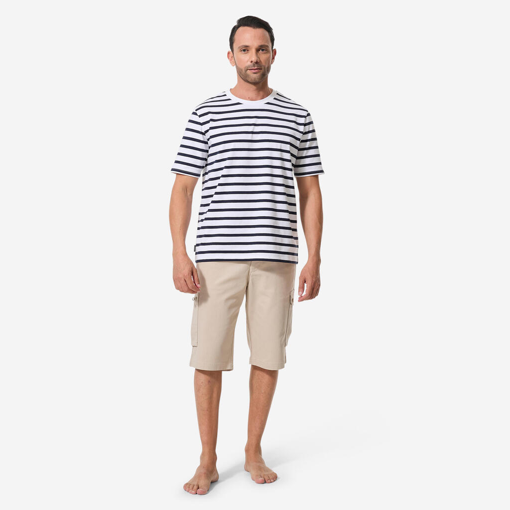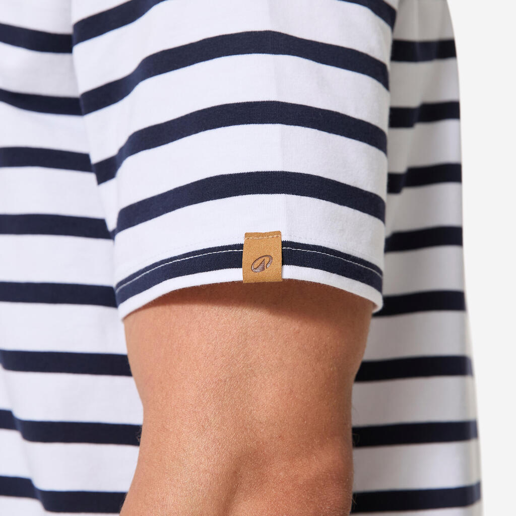Men’s sailing sailor’s top t-shirt, 100 white with blue stripes