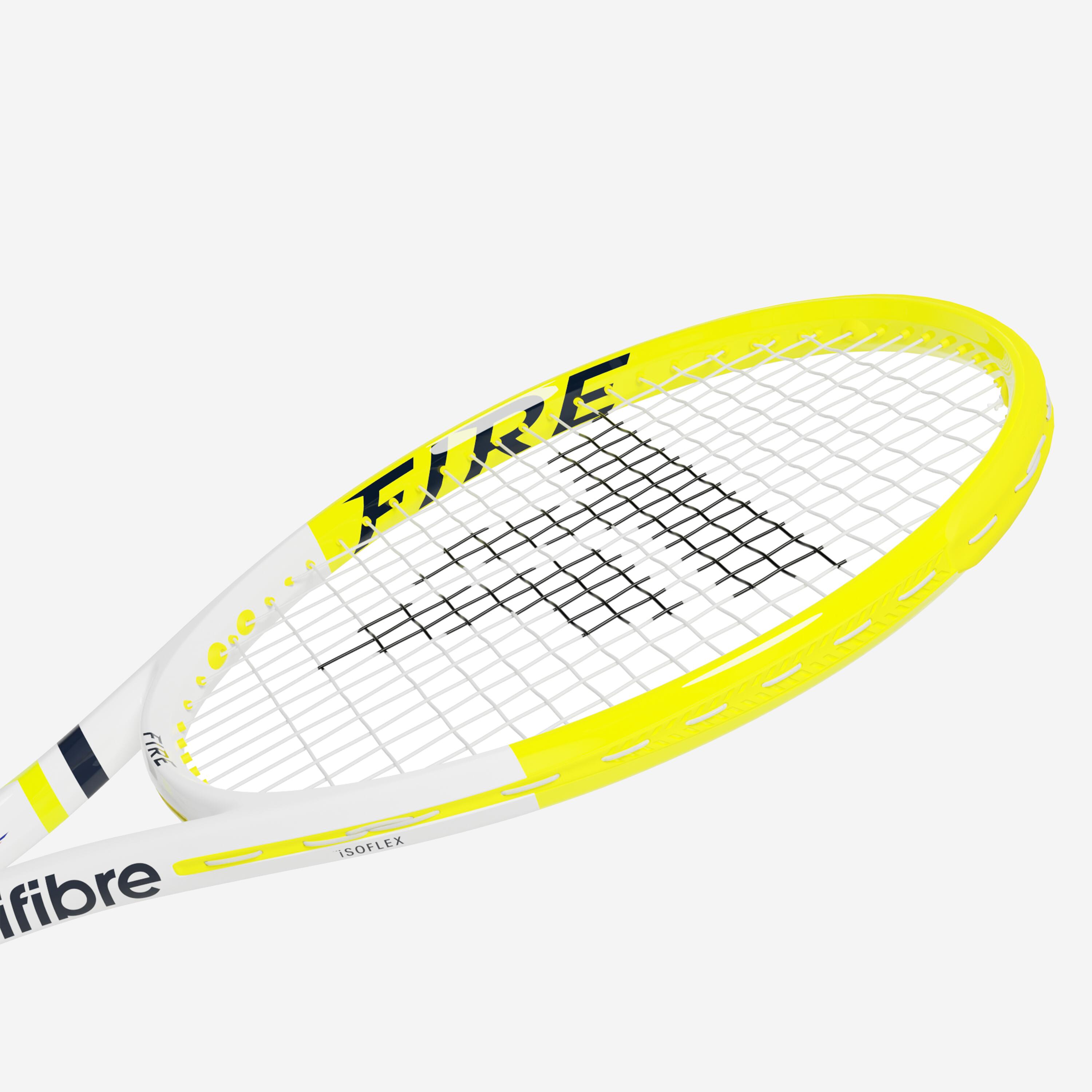 Isoflex technology, a variable rigidity all around the head size, widens the sweetspot for greater forgiveness on off-centre shots. The Fire 285 racket has a lower weight (285 g) to give competitive and regular players more manoeuvrability. With its 645 cm² head size and 16x19 string pattern, its strikes a good balance of power, comfort and manoeuvrability.