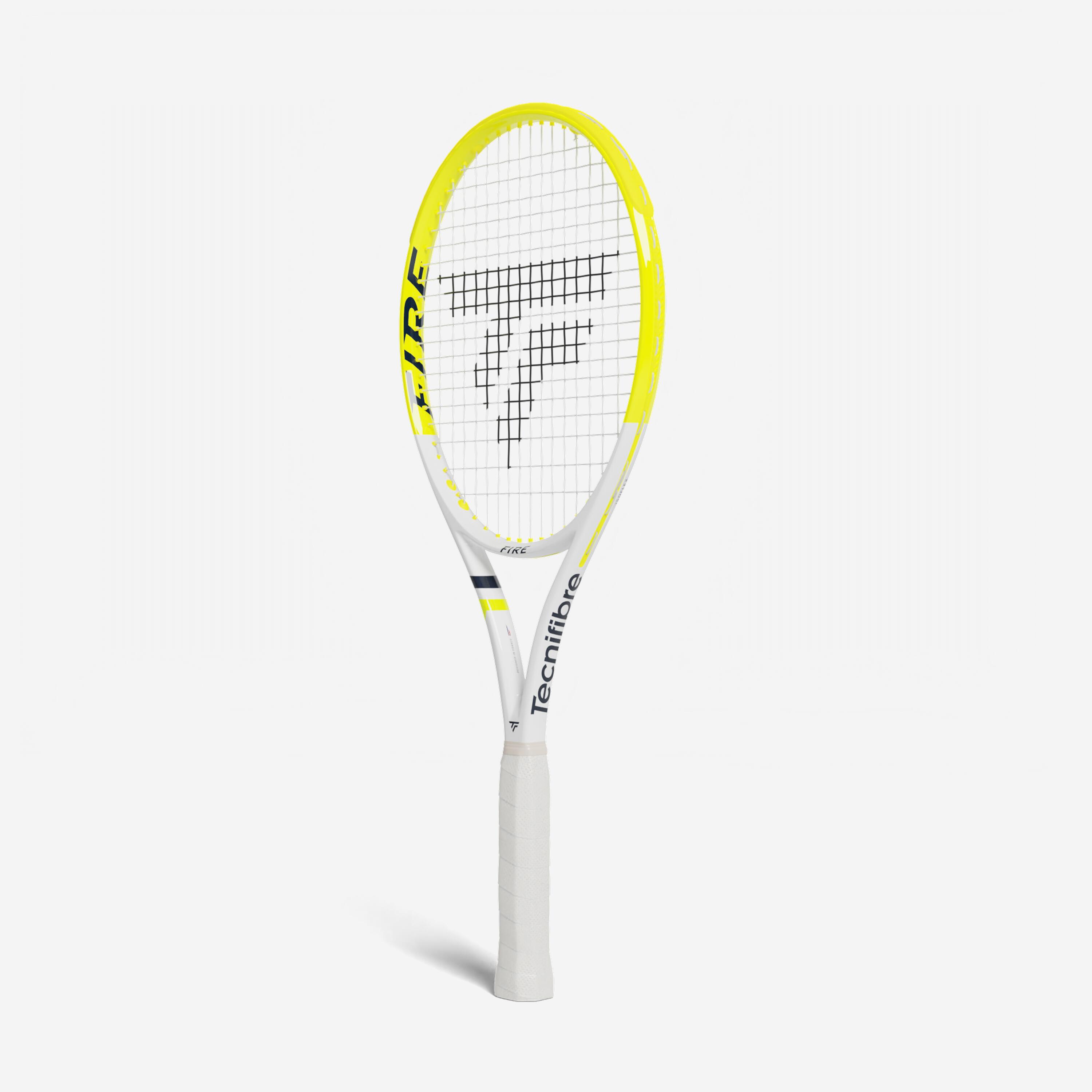 Maximum power and comfort with the Fire 285 tennis racket. To deliver power, this racket features higher-than-average stiffness, the aim being that the frame doesn't move on impact for maximum energy restitution.