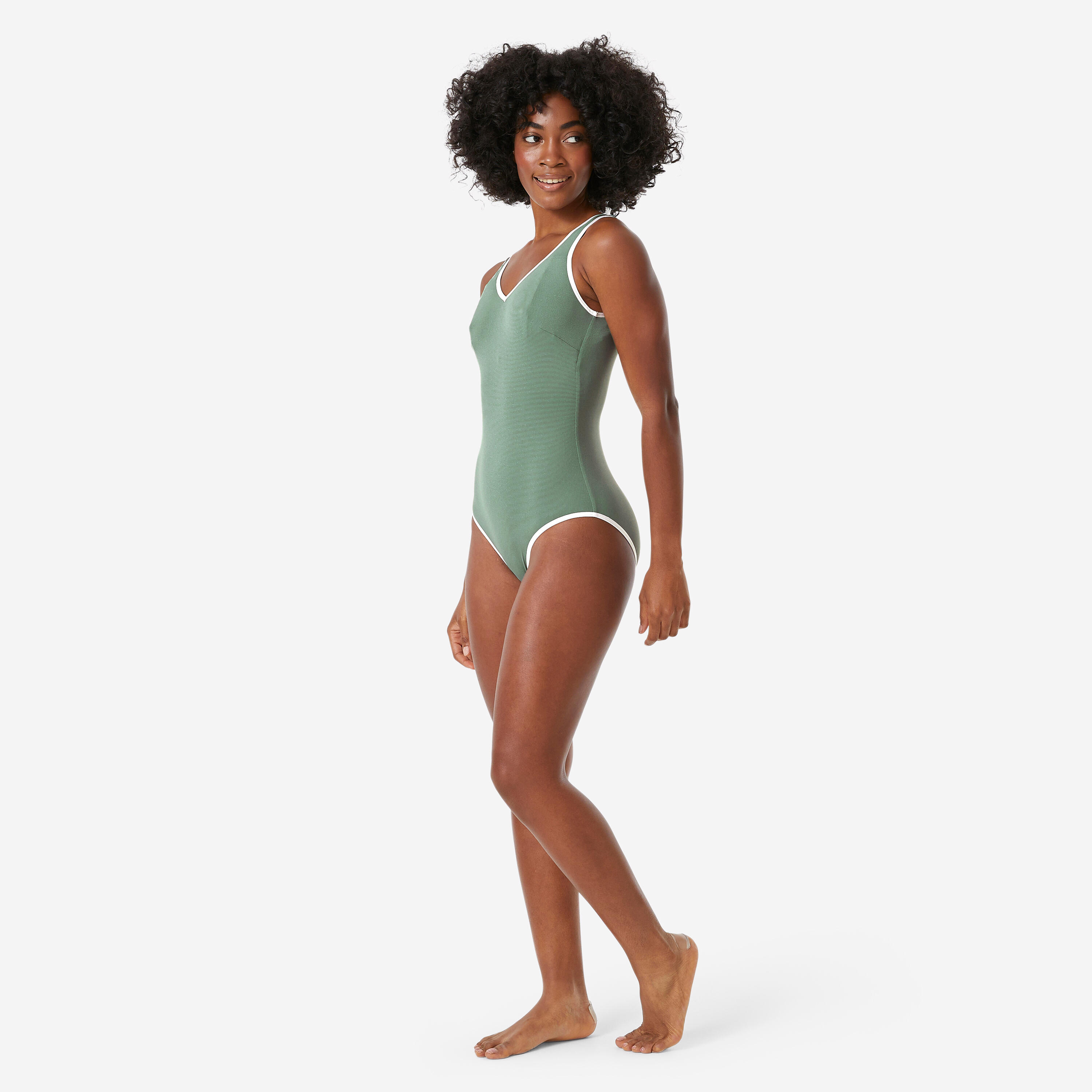 Need a versatile swimsuit for water sports? You will love its ribbed texture, its V-neck and back and its integrated bra for a light support.