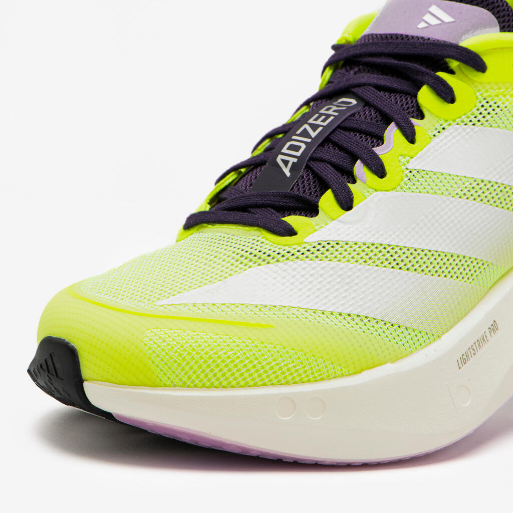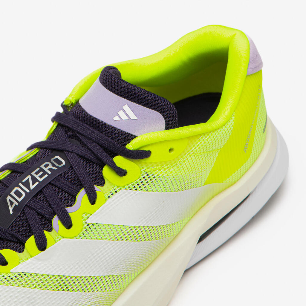 The ultra-light high-tech mesh upper of the Adizero Boston 13 provides targeted support and maximum breathability, which are essential assets for competition use.Its special eyelet construction provides precise lacing and a firm hold of the midfoot, which is essential for tight turns and sudden accelerations.Designed for runners with a neutral stride, this running shoe lets you focus all your attention on your performance and your time.