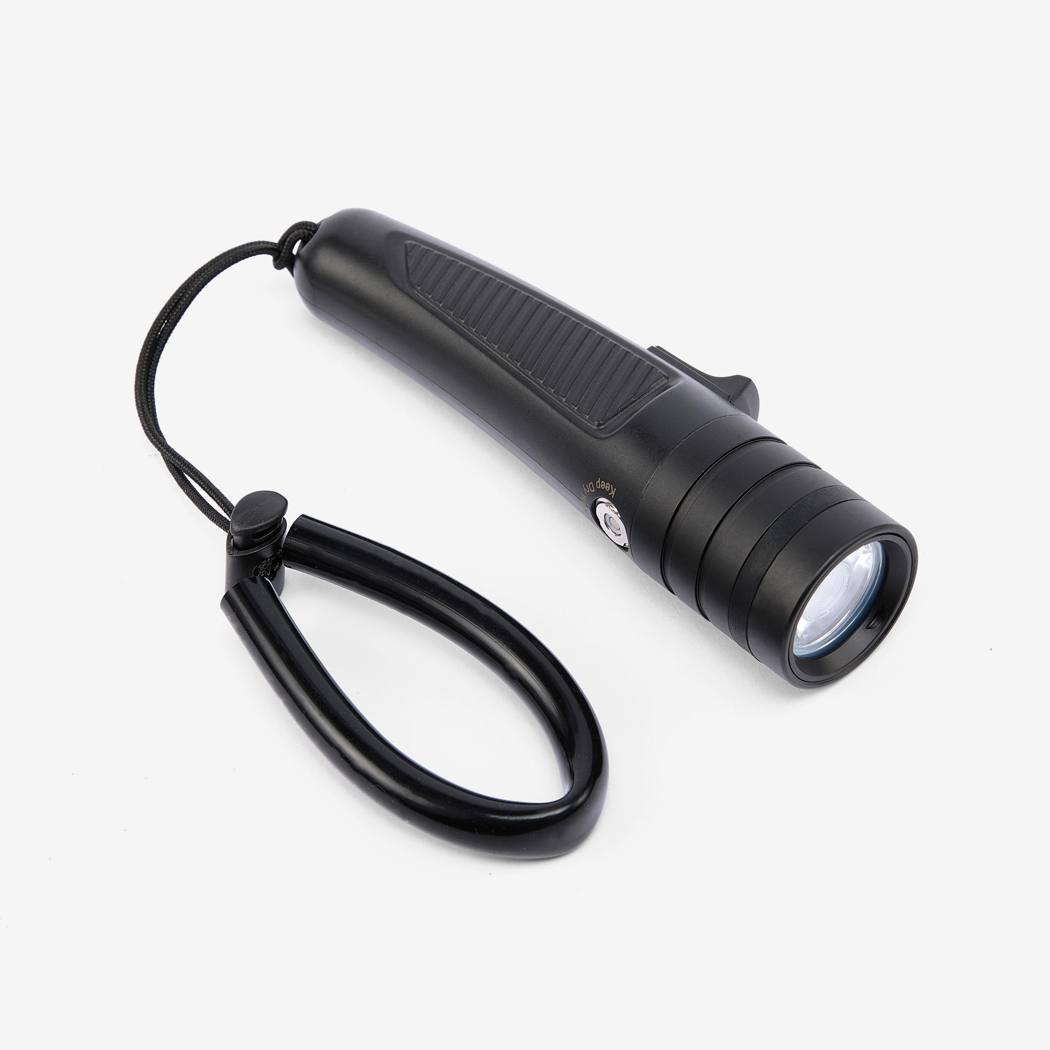 The design is specifically for underwater activities. This torch has a curved profile and a built-in handle for a comfortable, secure grip. The non-slip button is designed to be intuitive and easy to use, even when wearing diving gloves.