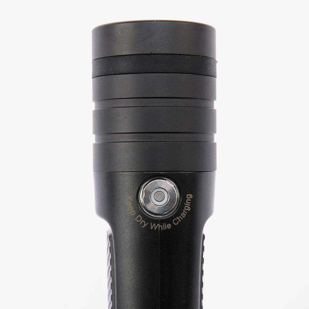 The 5,000 mAh lithium battery is recharged using its magnetic USB charger, so there is no need to open the torch! This recharging system is designed to withstand sand, salt and other external agents, guaranteeing its reliability and functionality in all conditions.