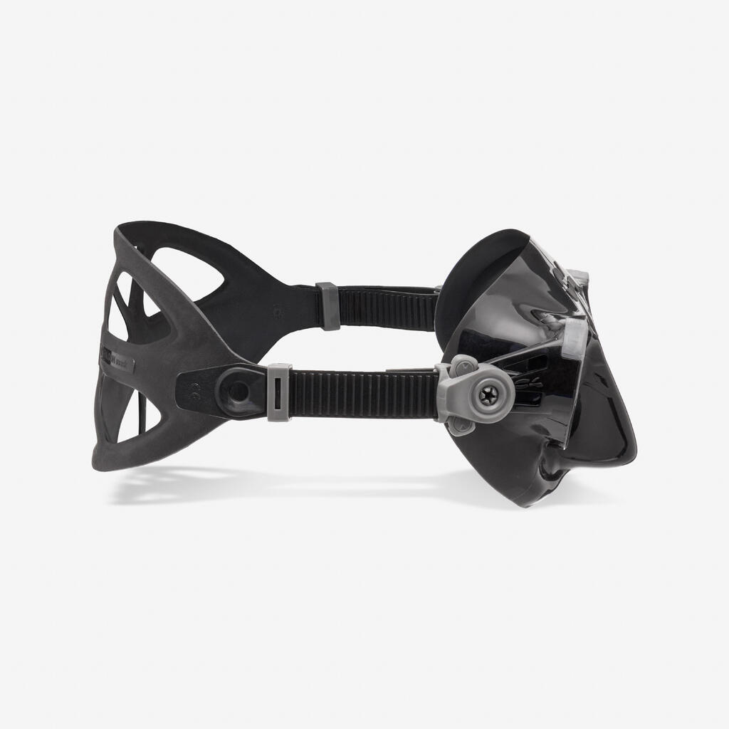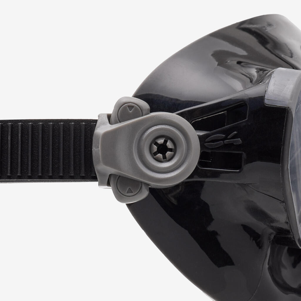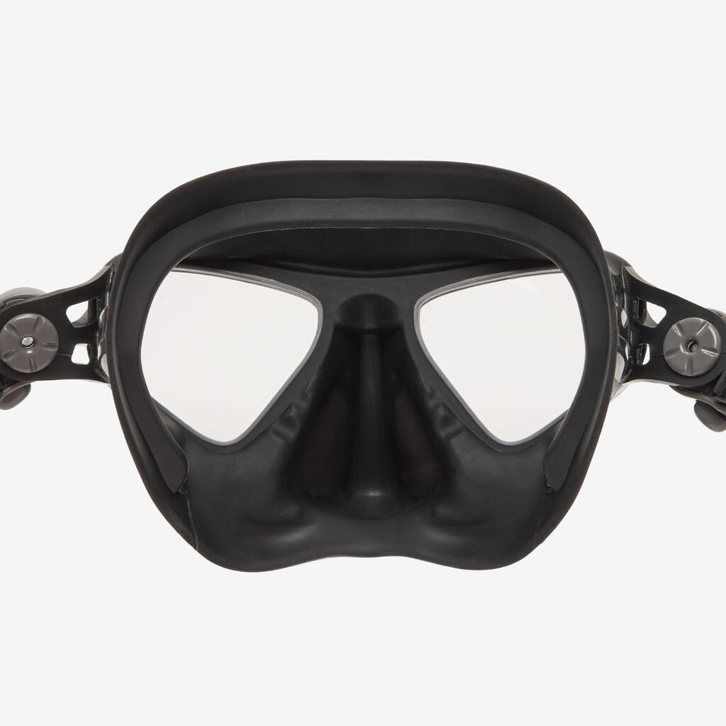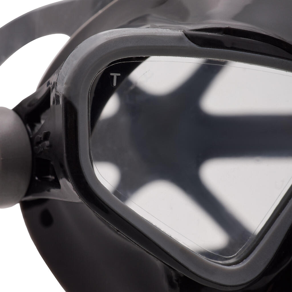 Mask squeeze is a phenomenon that occurs during descent, even within the first few metres underwater. As pressure increases, the air inside the mask compresses, creating a suction effect that can cause discomfort or even injury (to the face, eyes, etc.). To prevent this, you must equalise the pressure by gently and regularly blowing air through your nose during descent.