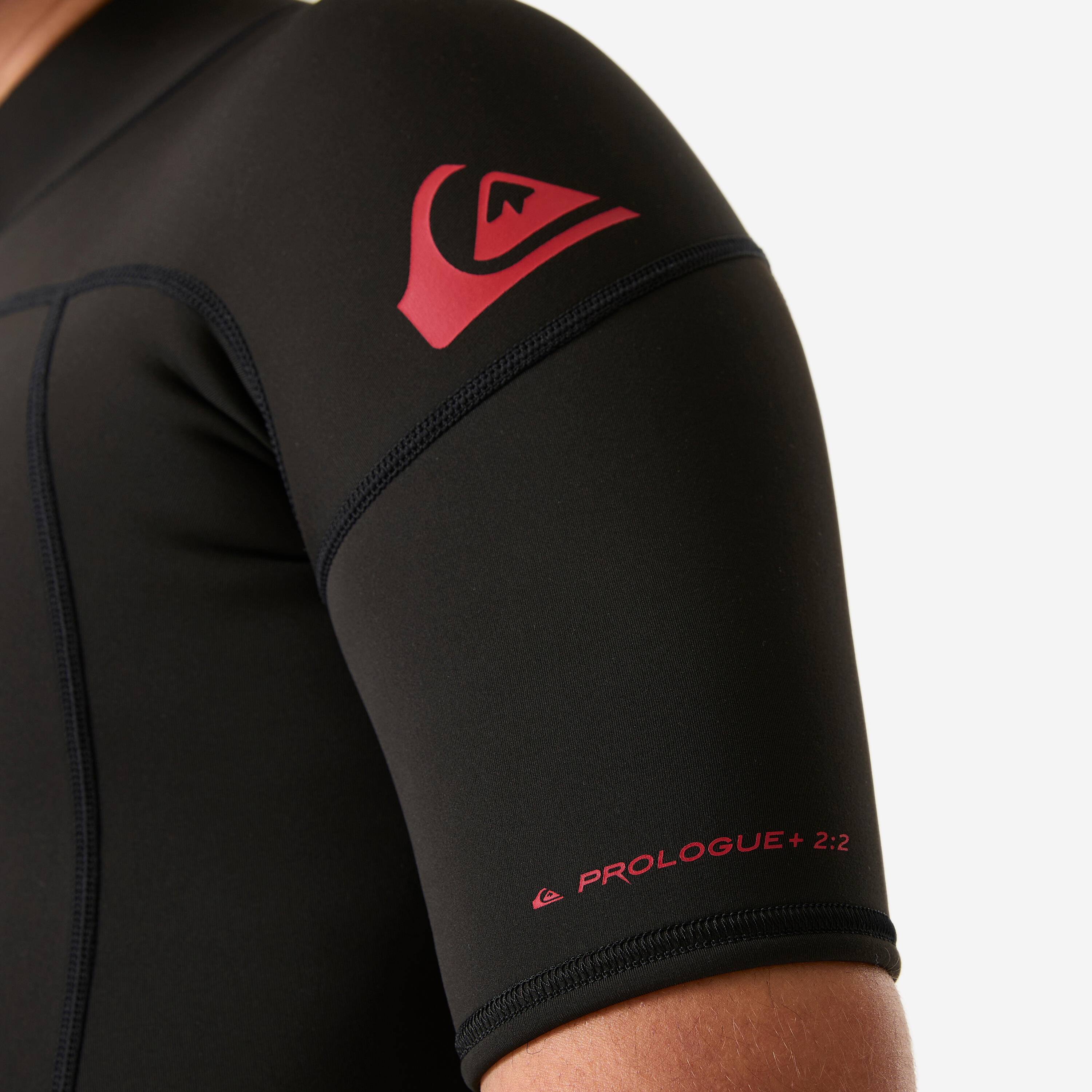 The seams on the men’s QUIKSILVER PROLOGUE shorty are “flatlock” for optimal flexibility. ALPHA AQUA water-based glue
