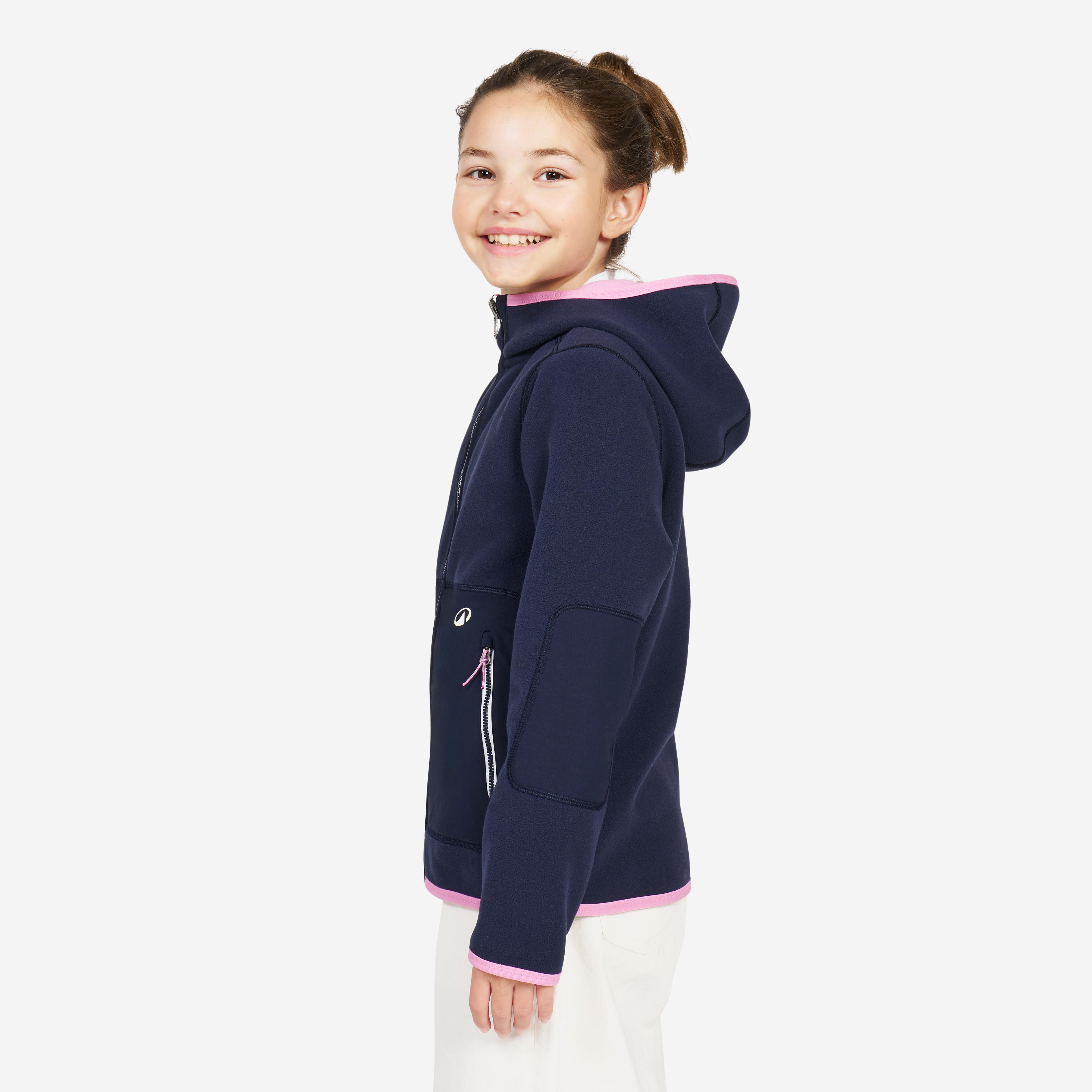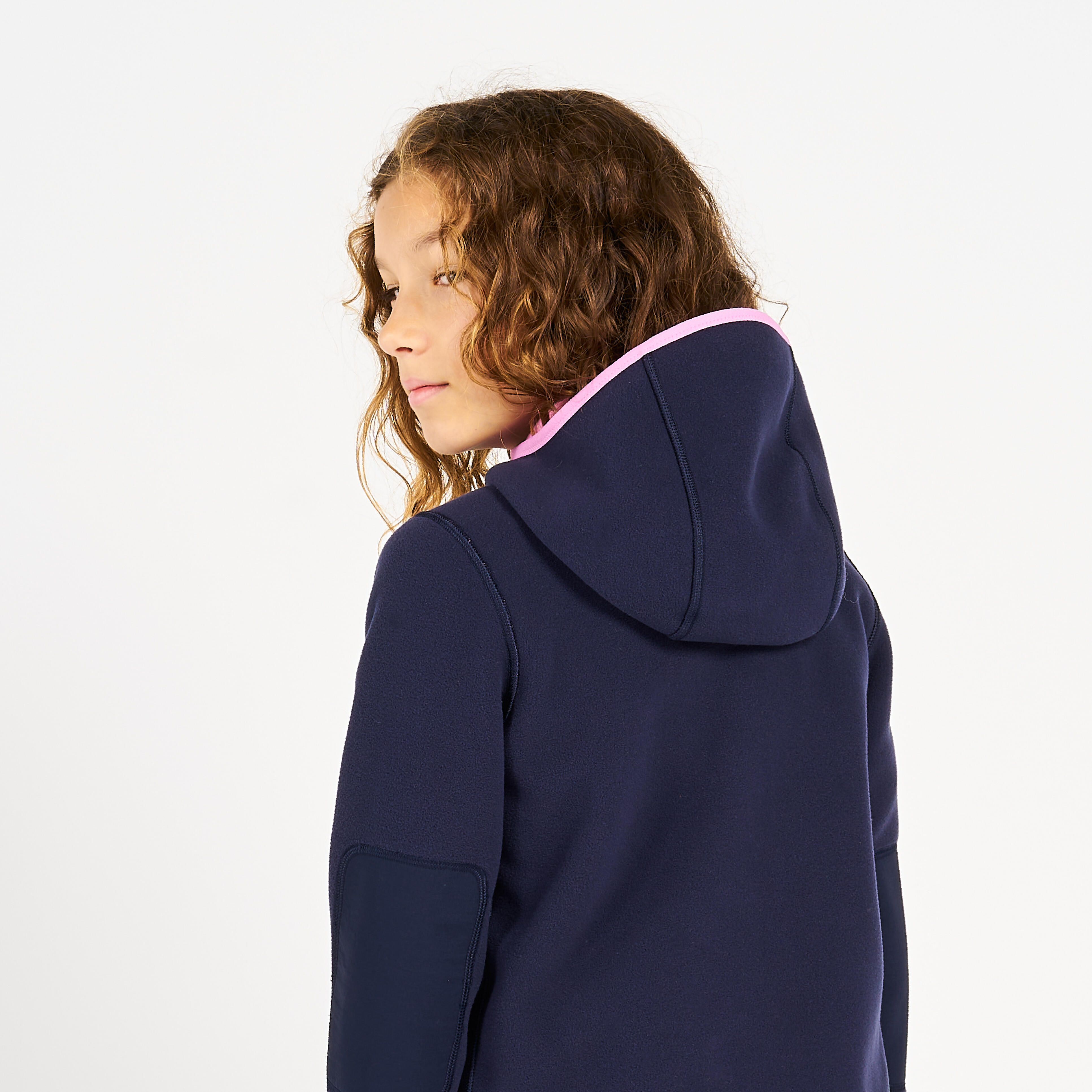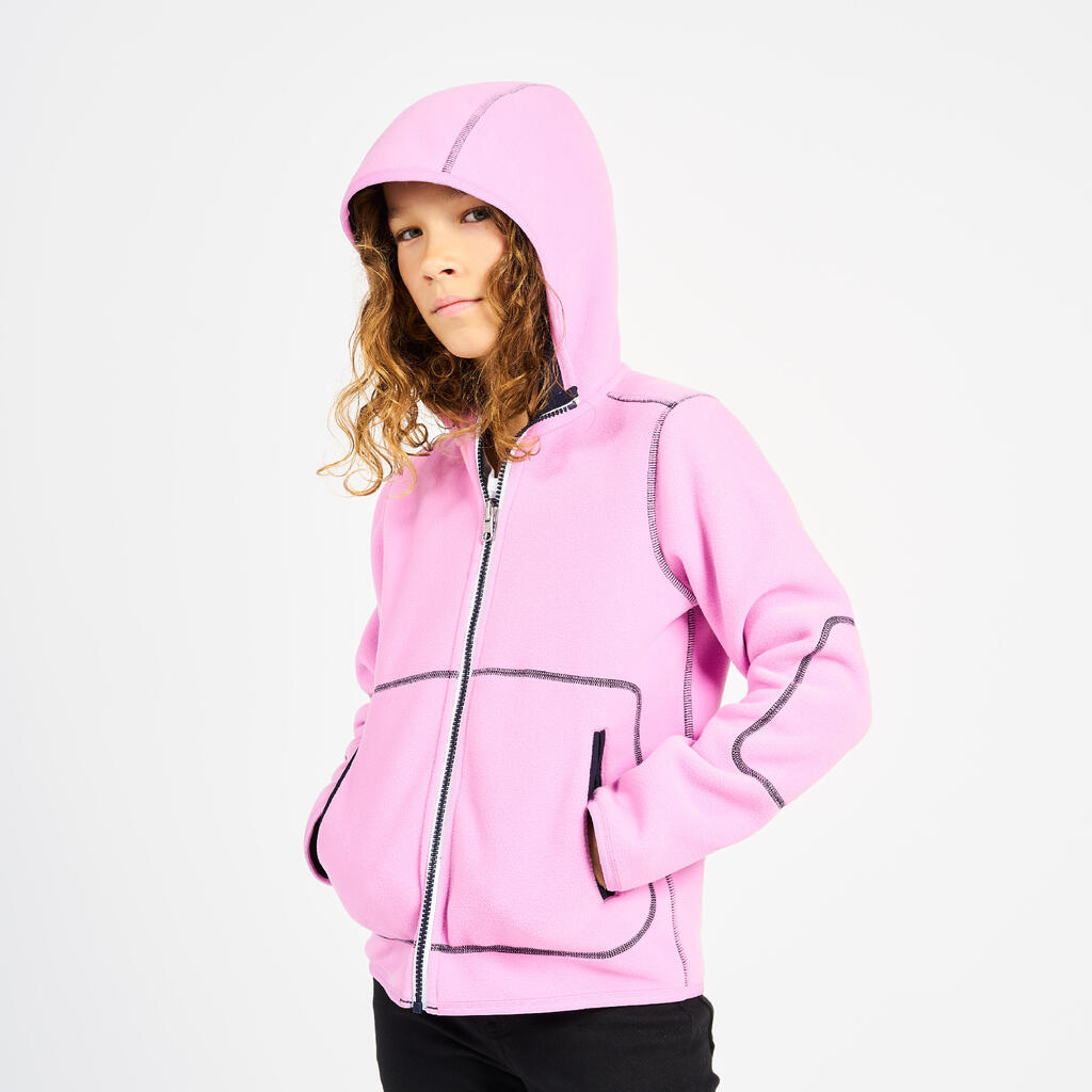 Kids’ sailing fleece jacket, warm and reversible, 500, navy blue/pink