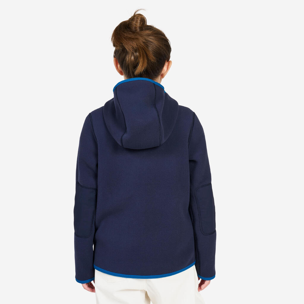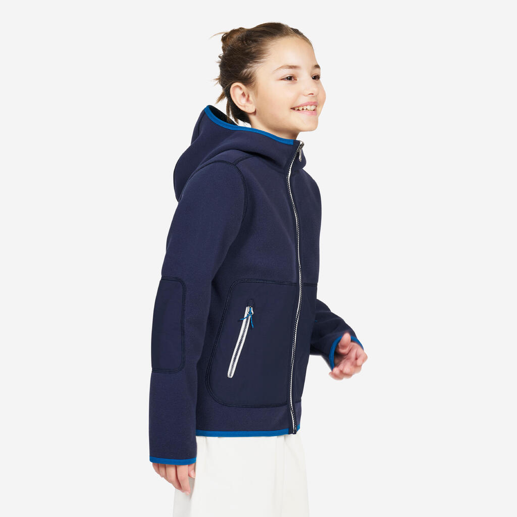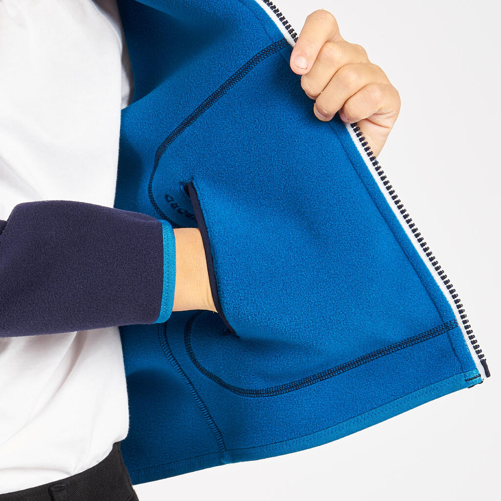 Kids’ fleece sailing jacket, warm and reversible, 500, navy blue/blue