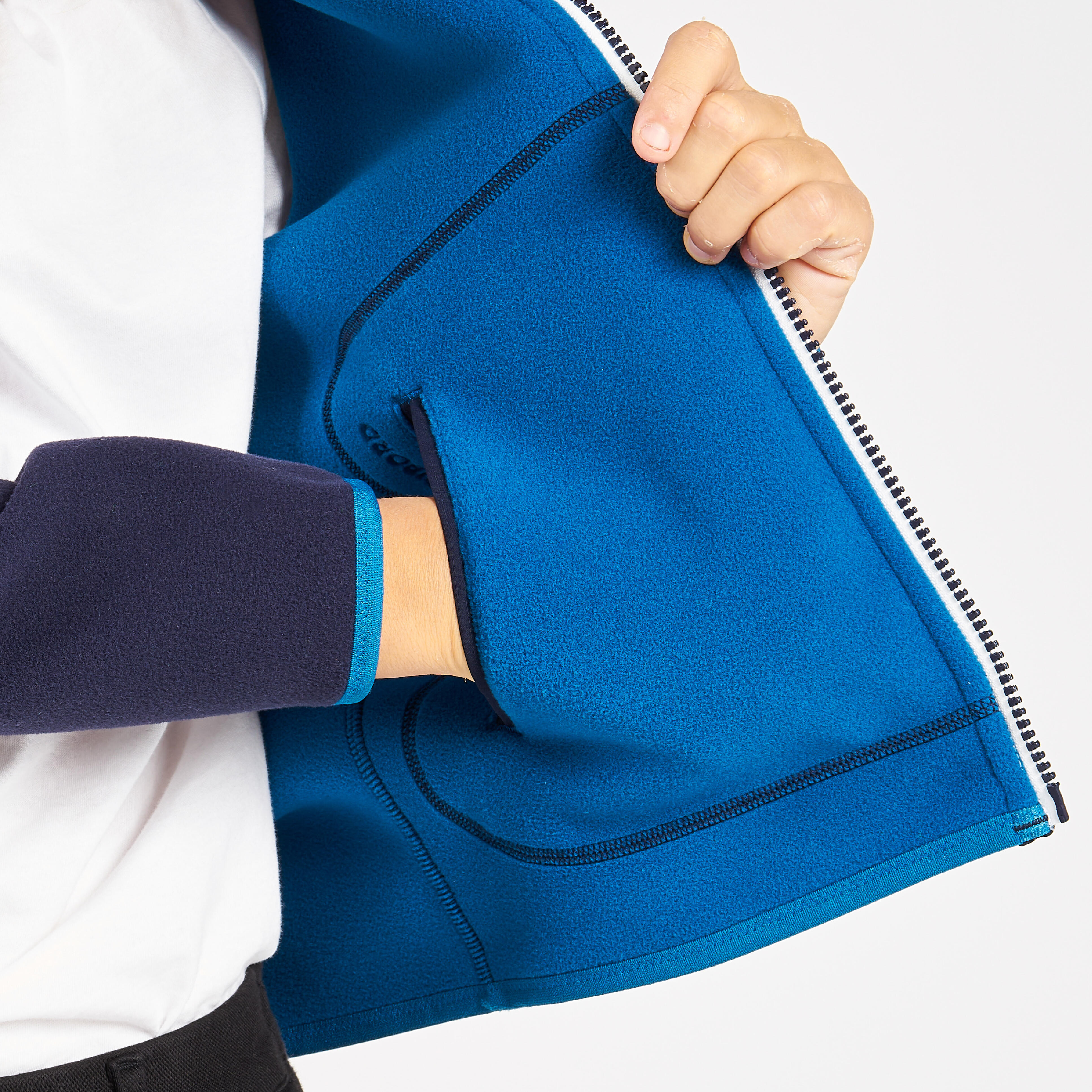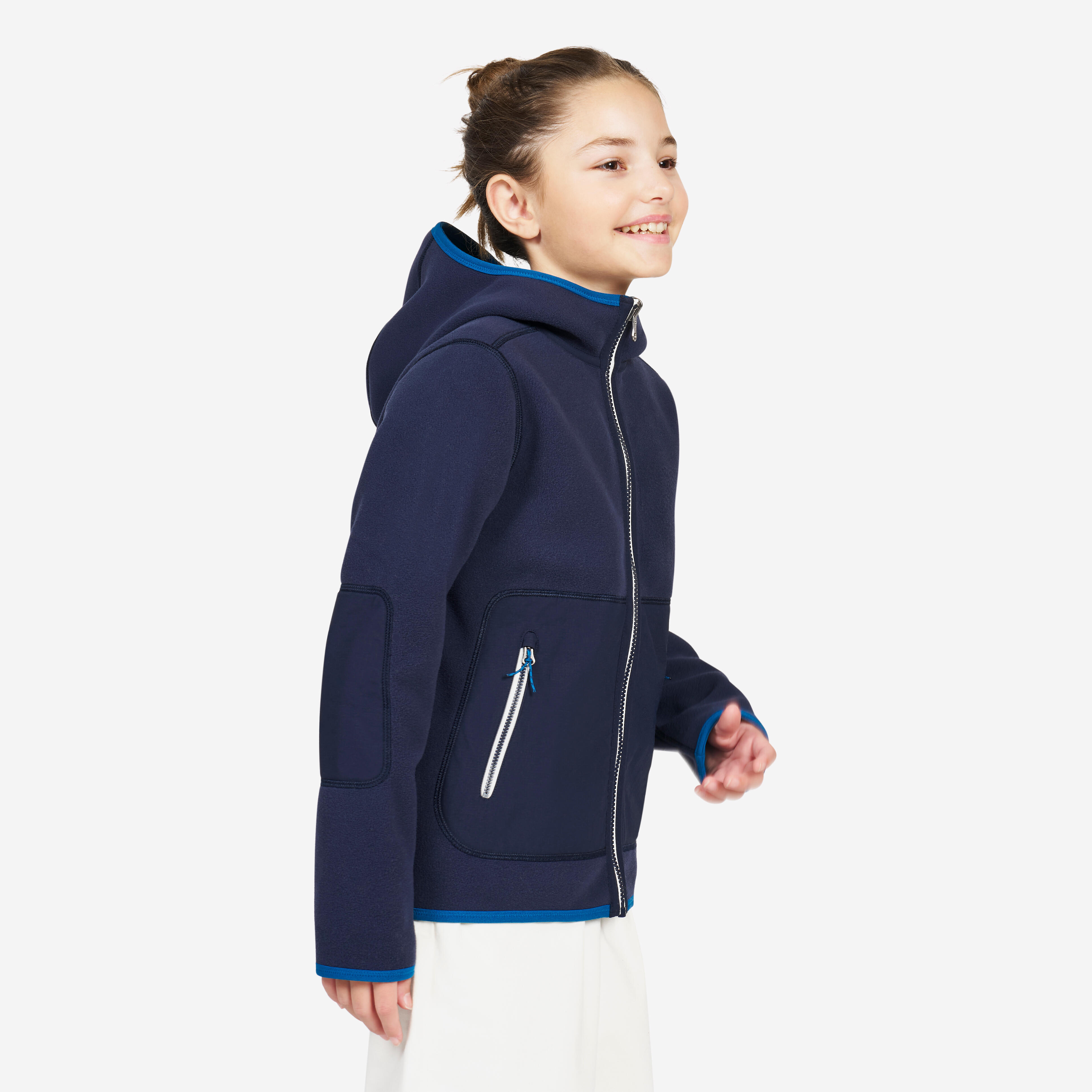Warm, water-repellent and windproof, this kid’s fleece jacket is easy to wear every day! Reversible, it has a neutral side and a technical side, with reinforcements at the pockets and elbows.