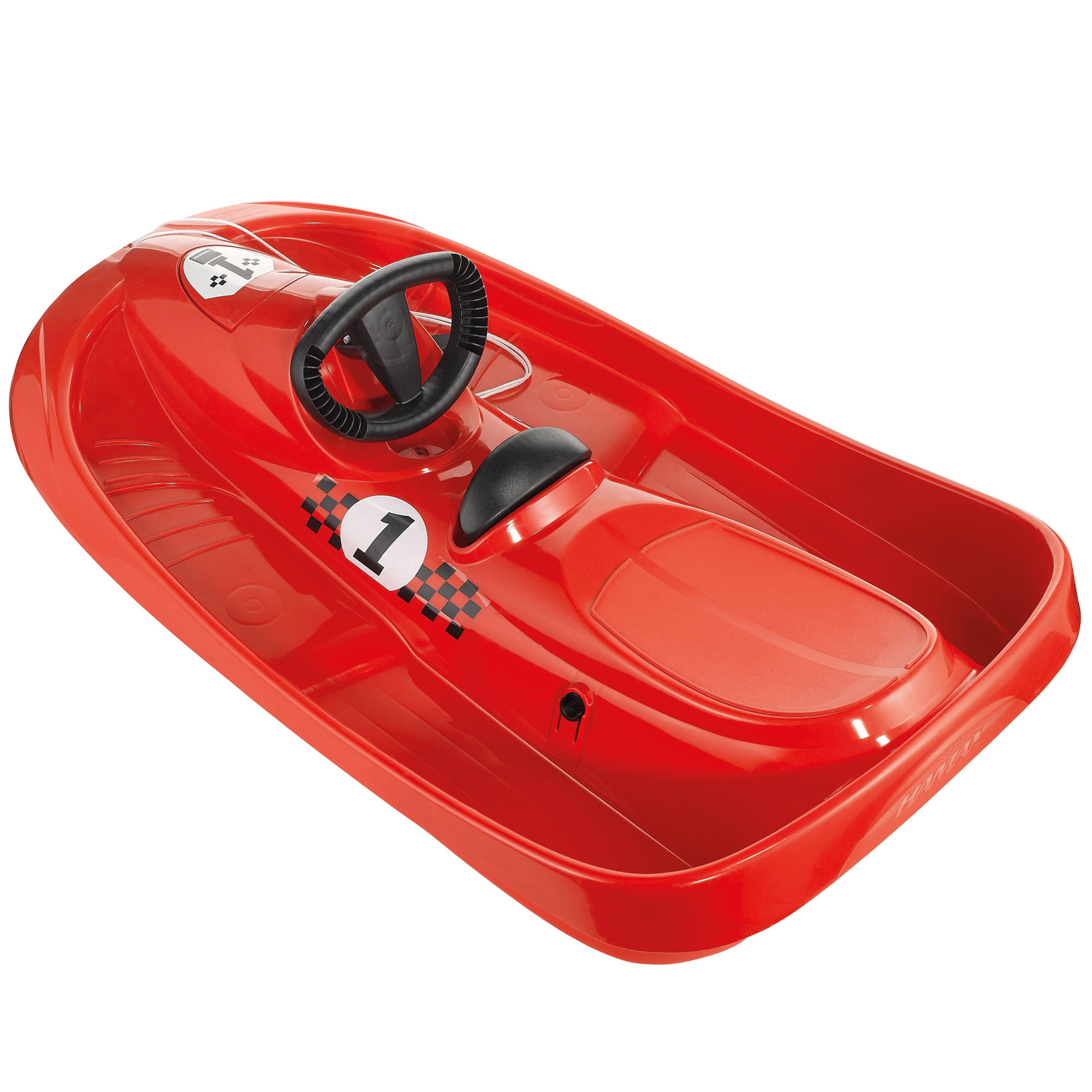 This classic 1-seat tray sledge is perfect for children 3 years and older! They can sledge alone on the snow just like real little racing drivers.