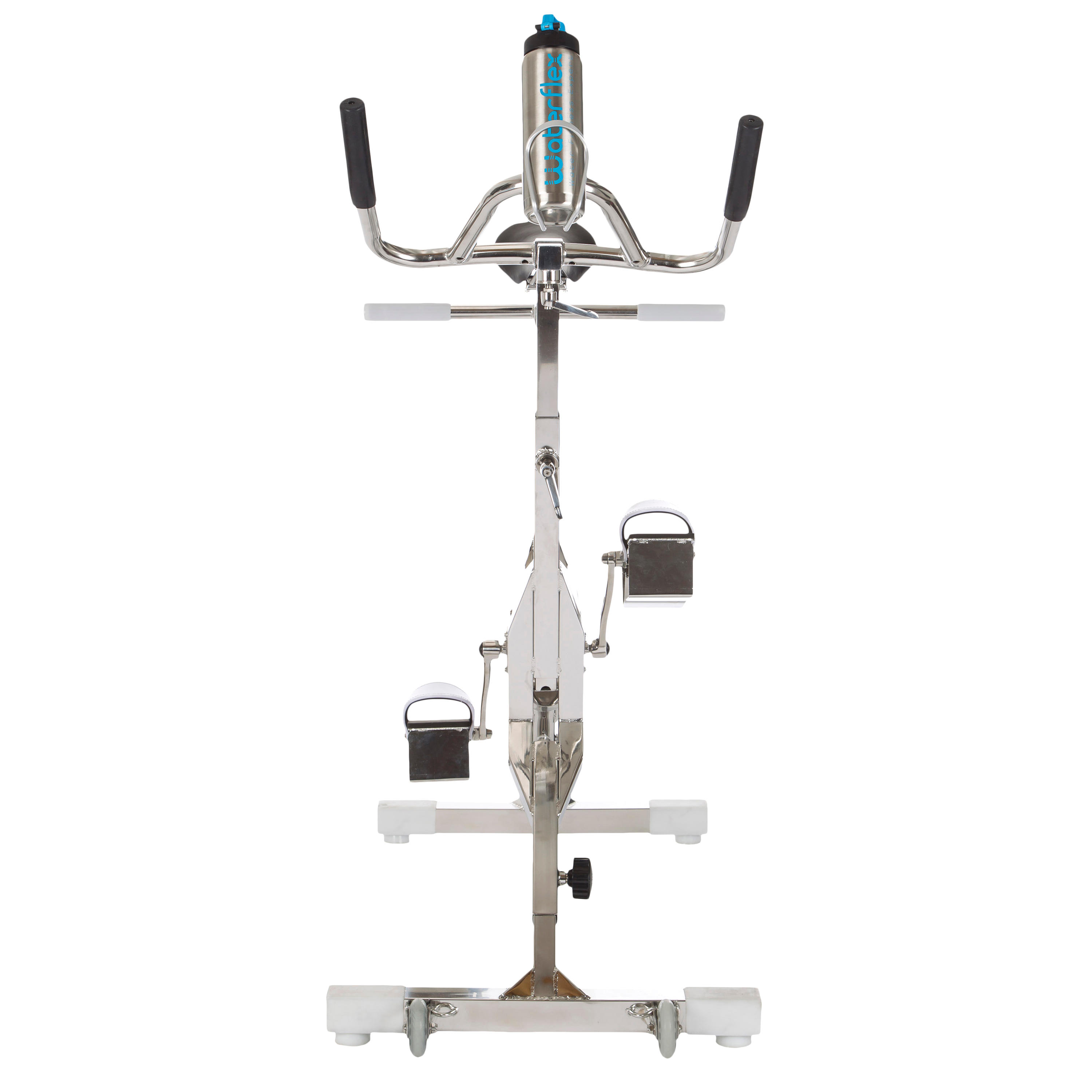 The multi-training bar has been specially designed to attach to the back of your pool bike. You can use it to do additional exercises that complement your pedalling or to stretch after your Aquabiking session.
