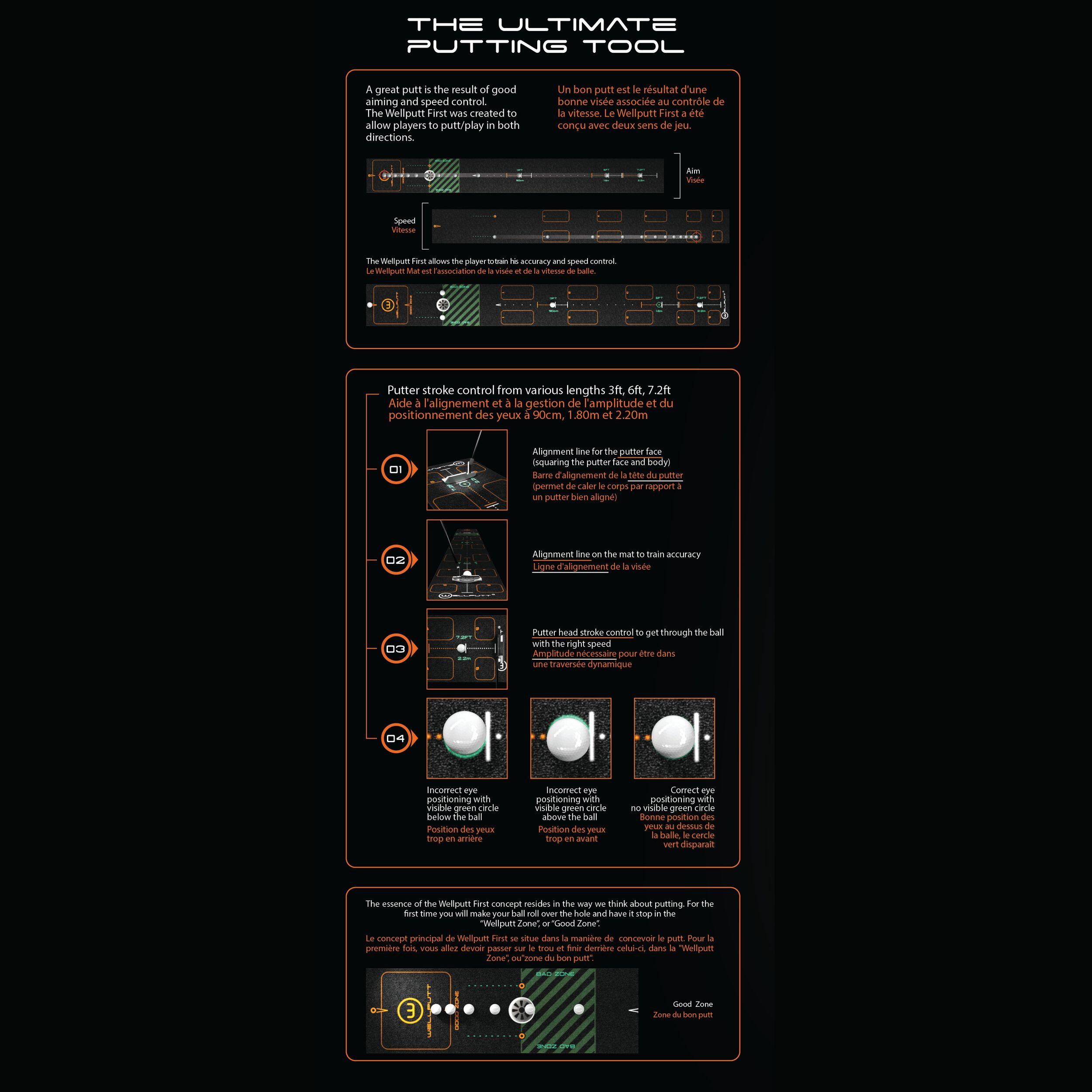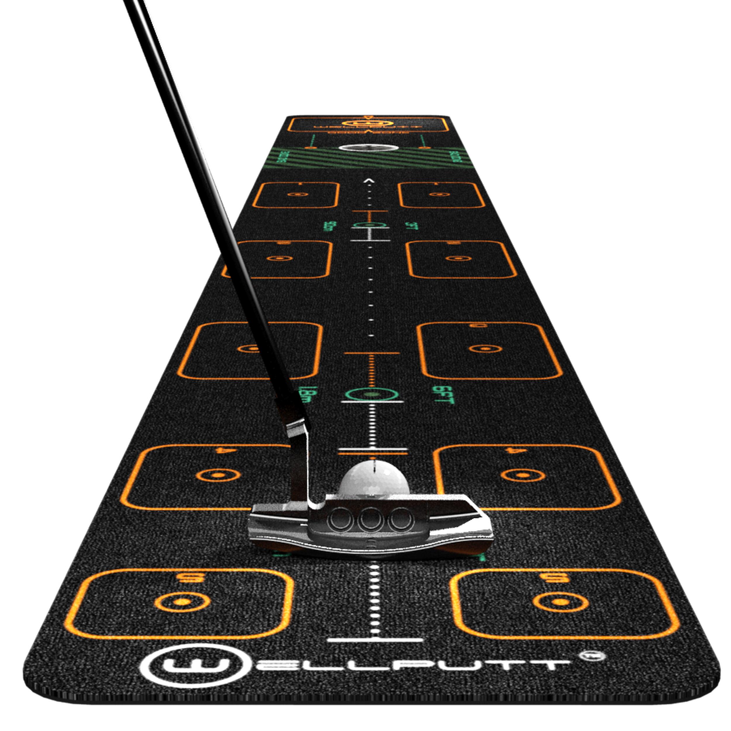 The WELLPUTT first has been designed with two game modes to work on your speed and aim. It includes 10 fun putting exercises to improve your putting.