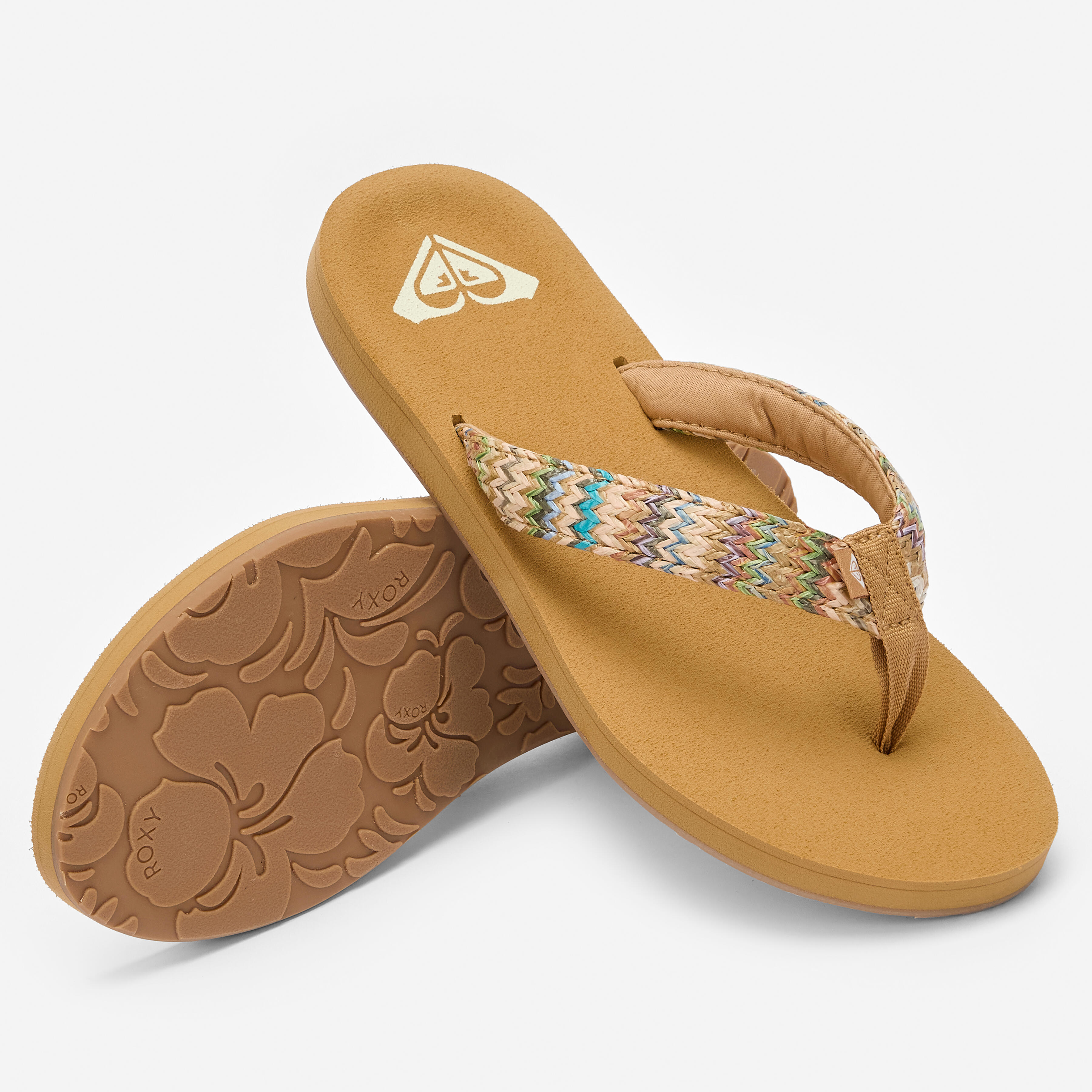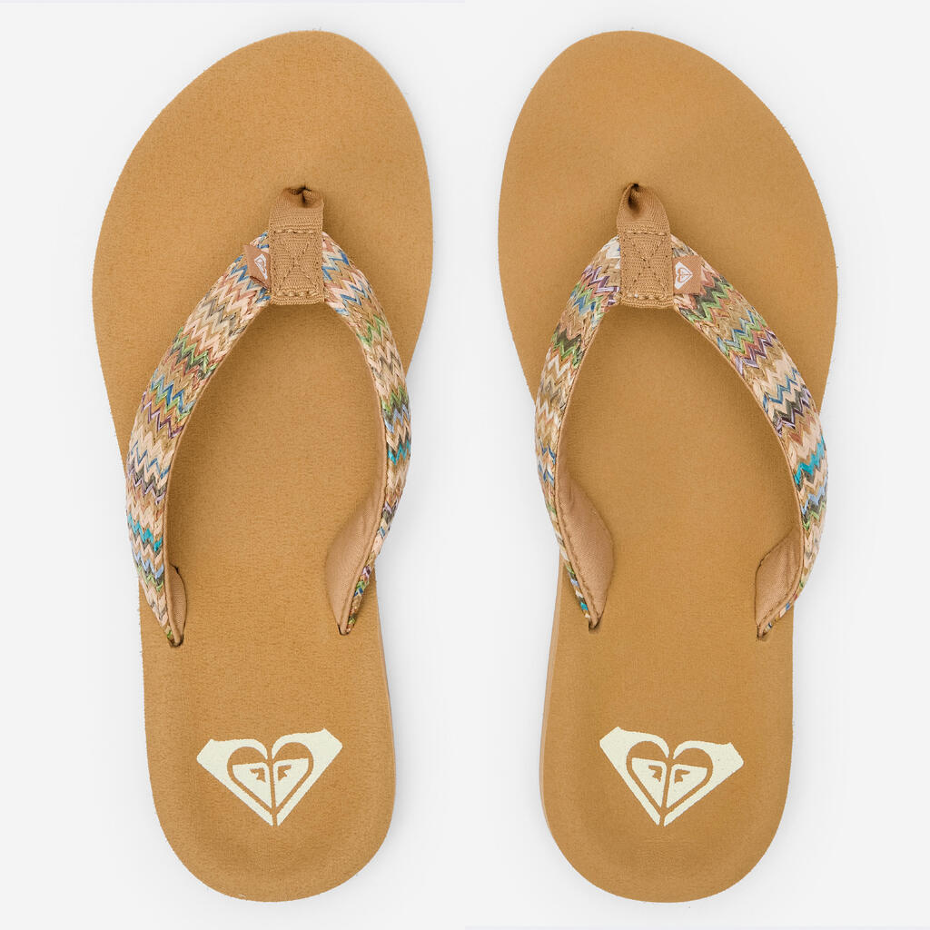 Flip-flops are summer shoes made of a simple rubber sole that is held on the foot by a strap passed between the first two toes of the foot or by straps crossed over the instep. Easy to put on and take off, they leave feet bare and let the air get to them. They can be worn in the water and on sand, letting you walk over a burning hot beach.